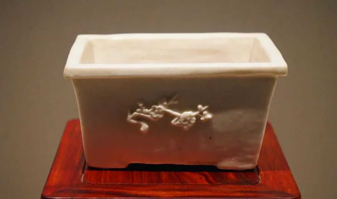 明,白釉瓷贴花方形四足花盆