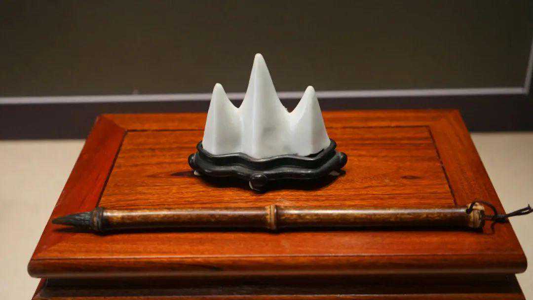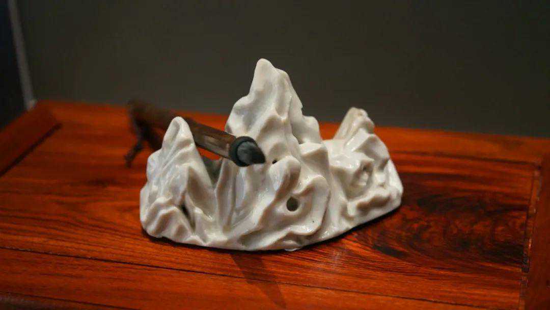 清,白釉瓷山形笔架