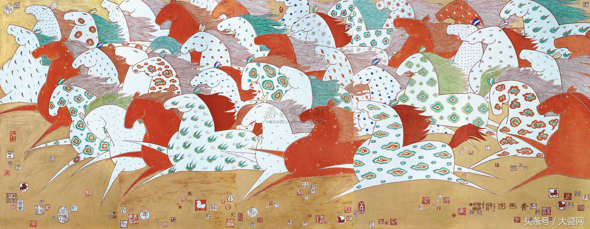 中国陶瓷艺术大师朱乐耕作品《红绿彩奔马图》