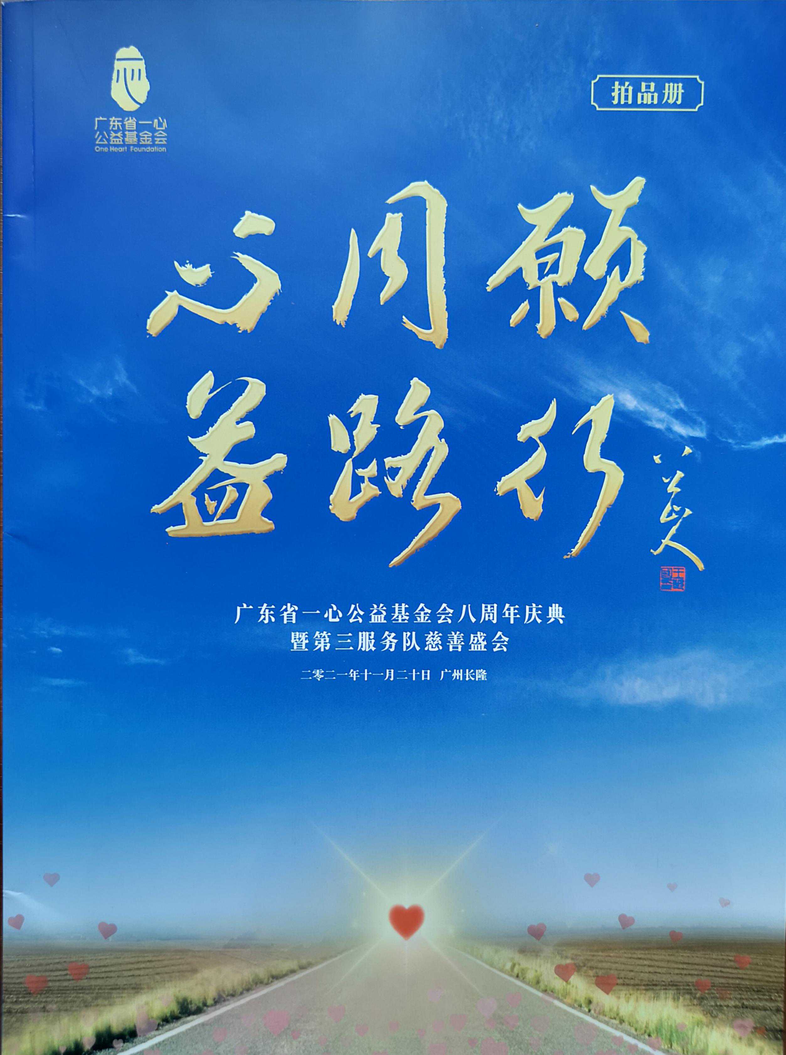 王世国为这次慈善盛会题写主题标语《心同愿,益路行》,并成为《拍品册》封面题签