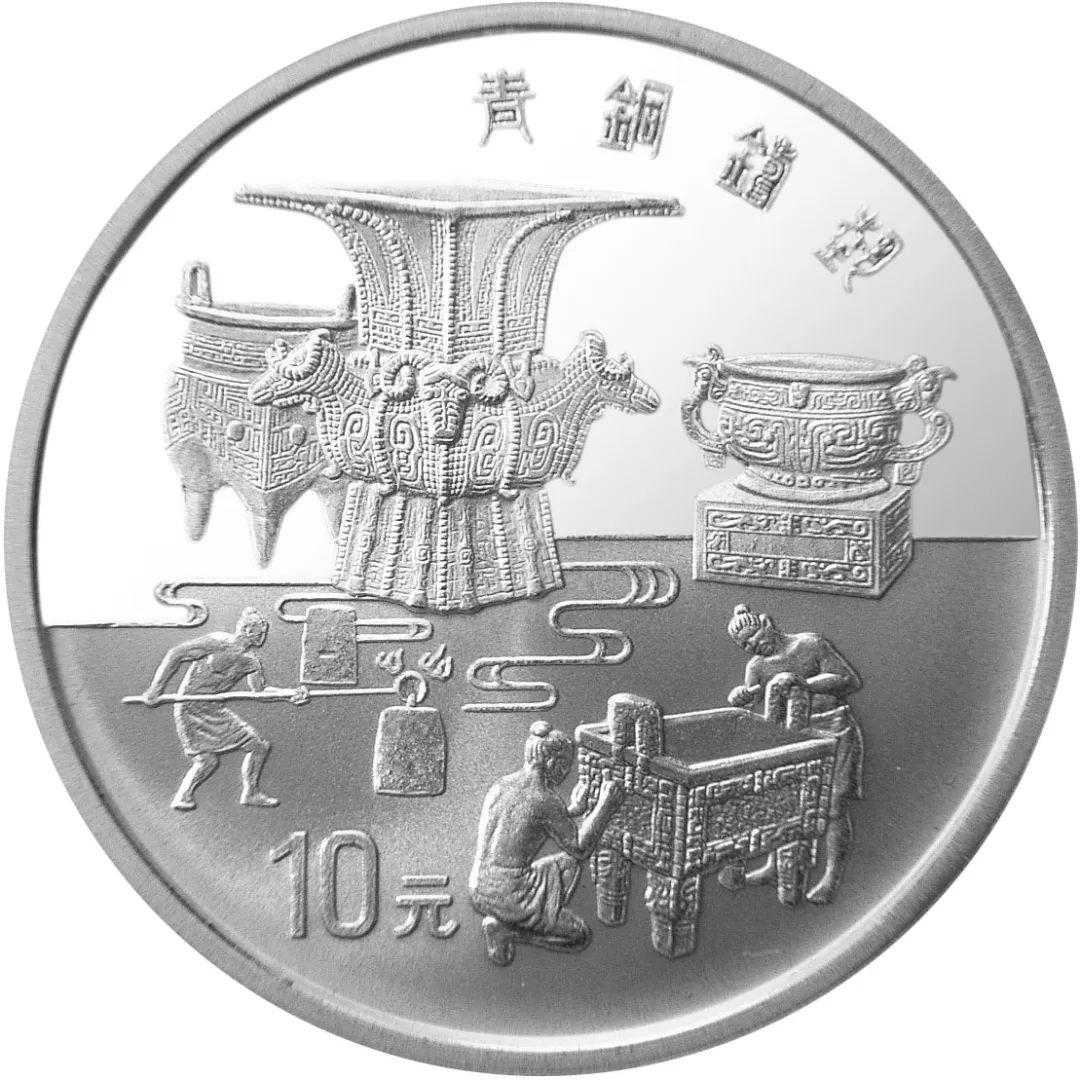 第2组金银币背面图案分别为后裔射日、嫦娥奔月、青铜铸艺、钱泉源长、汉字书法以及陶瓷艺匠。