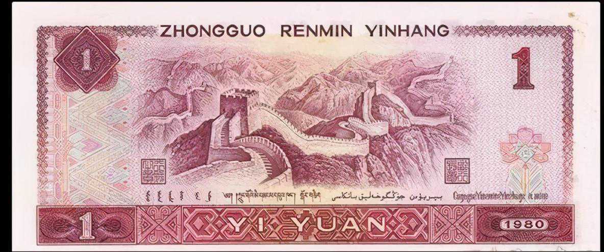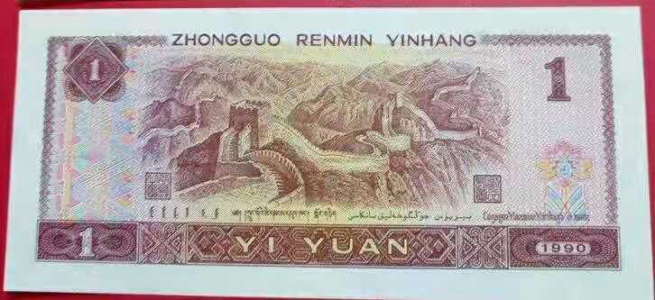 这张纸币是第四版人民币中版别最多的。第四版人民币大多是1980版,但是贰元、伍拾元、壹佰元有二个版别,分别是1980版和1990版。而这张壹元纸币有三个版别,分别是1980版、1990版、1996版。