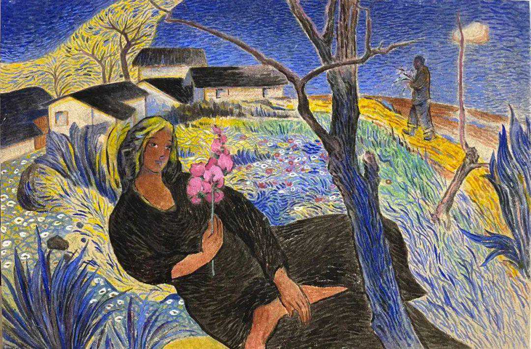 《每天的风景》46cmx63cm麻布岩彩2019年