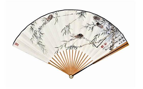 同时,江苹先生数十年来深入研究扇面创作,要在方尺内圆形和弧形的扇面上作书画,把诗、书、画、印十分和谐地融为一体,就必须讲究章法,加以合理布局,才能成为一幅成功的作品。江苹先生曾总结画扇要诀:“精思巧构、气韵为先、饱水澄色、以软制硬、‘少吃多餐’、三矾九染、诸法并用、设色理端,为我画扇之八诀,仅供同道一晒。”江苹先生的扇面设色爽丽,给人以高雅、宁静、清新的审美之感,独领当代画坛。
