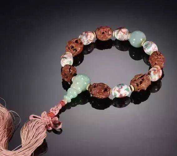 果实(核)的手串,在佛珠手串的大家庭中占有很大比例,广受大众欢迎。其中,以桃核、橄榄核为果核类的代表,以木槵子、椰壳(蒂)为果实类的代表。