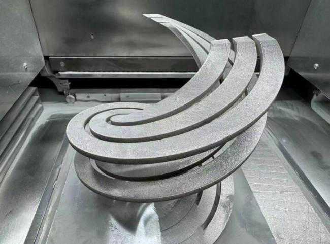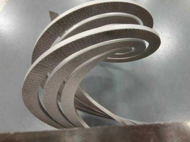 该无支撑螺旋件分别实现了15°、21°、28°的悬空无支撑打印,零件导热良好,下表面光滑,无明显夹渣形变。