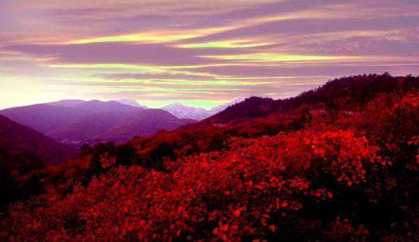 漫山红色与黄色、橙色交错