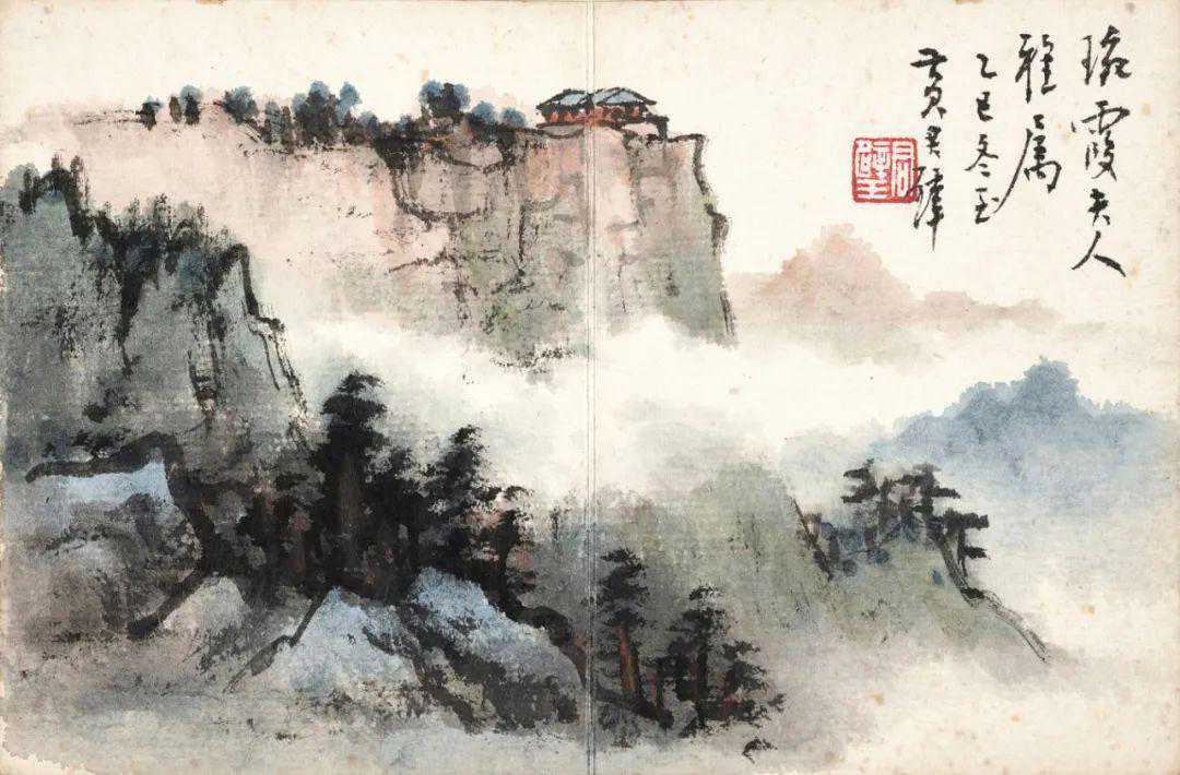 日后,画家从米家云山一变再变,在六十年代悟出泼墨泼彩,以抽象手法在色墨积渲染泼间表现烟云氤氲,营造「无象之象」之景,前无古人,而画中精神气韵可远溯自米家,一脉相通。画上七绝,直至八十年代仍屡录之,笔底烟云却已非现貌,然此情此景对其印象之深,影响之巨,则不言而喻!