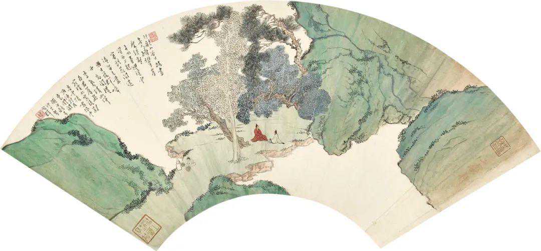 上款「慧吾」即梁慧吾,粤人,活跃于二十世纪上半叶之港穗收藏界,与何冠五、黄君璧等皆熟稔,其「天景楼」收藏书画自宋元以降,下迄明清,尤以明清名家金笺扇面量多质精为着。一九四一年六月上旬,香港中国文化协进会、中英文化协会合办艺术观赏会,展出宋元明清作品,全由梁氏提供。战后,两会于一九四七年一月合办大型「中国古代文物展览会」,他亦为参展者之一。有谓梁氏居港,惟其交往艺坛中人,多在粤省,当时两地交通无阻,往来络绎,自为易举。至于四七年,他与粤省收藏家携带「中国古代文物展览会」展品乘「西安轮」返穗,途中失火,仅以身逃,藏品尽付祝融,可证他实居于穗城也。
