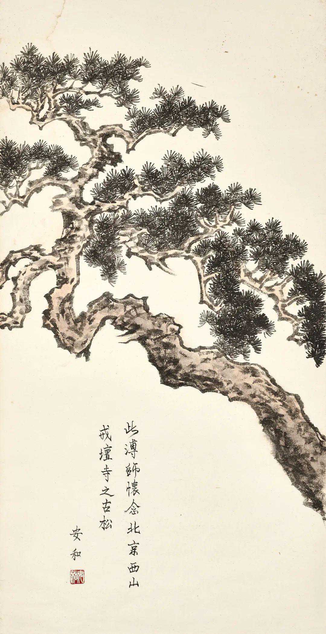 本幅未署款,见笔墨恣放淋漓,似属乘兴之作,可知画家当年栖居西山时作伴之古松已深植其心。写毕,留付安和,或兼有示画法之意。