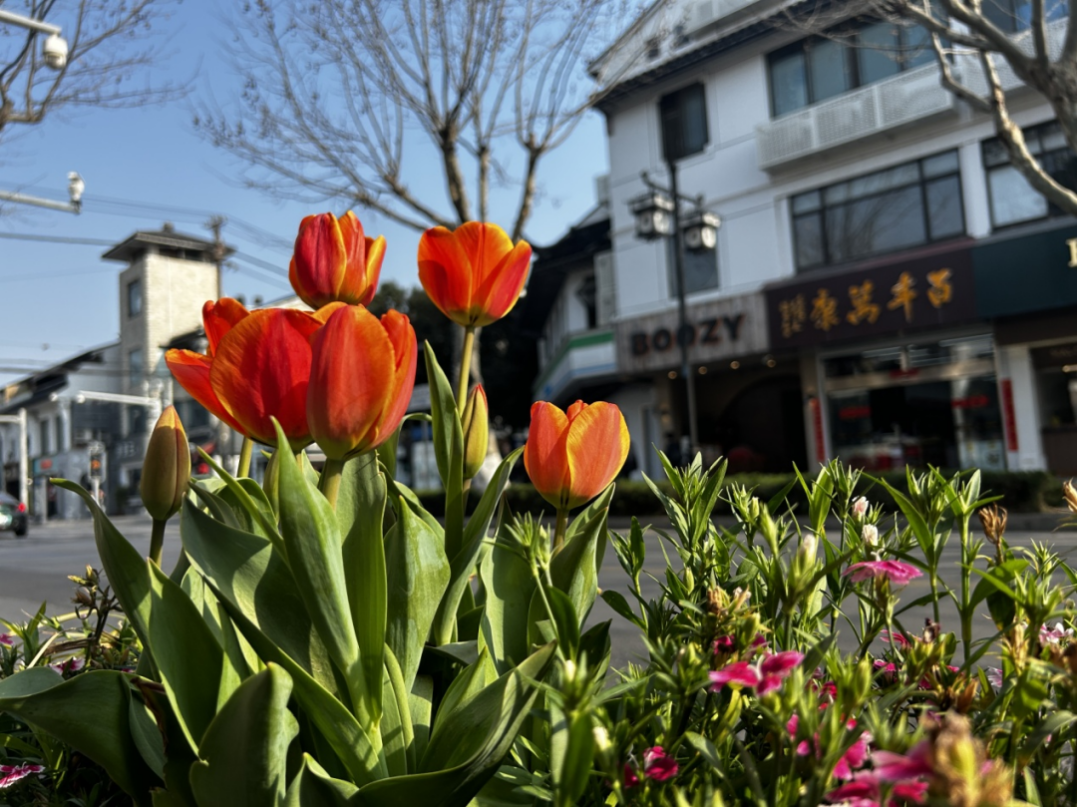 目前街边的郁金香、三色堇