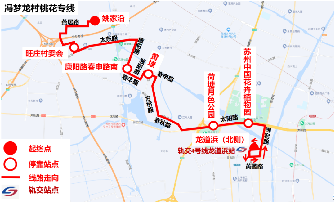 龙道浜(北侧)、苏州中国花卉植物园、荷塘月色公园、黄埭、康阳路春申路南、旺庄村委会、姚家沿。