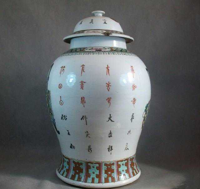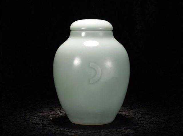 将军罐:佛教僧侣盛敛骨灰的器物,宝珠顶盖形似将军盔帽而得名。初见于明嘉靖、万历朝,至清代顺治时基本定型。清康熙朝最流行。罐身为直口,丰肩,敛腹,平面砂底,附宝珠顶高圆盖。