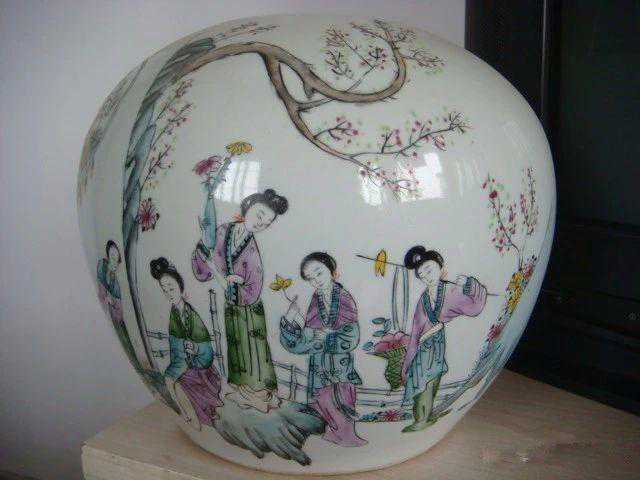 粥罐:流行于清代,康熙时始创。直口圆肩,深腹,底微敛,圈足,器肩部有对称双孔,可系绳索或配金属环以便提携。同治以后,粥罐使用广泛,产量猛增。