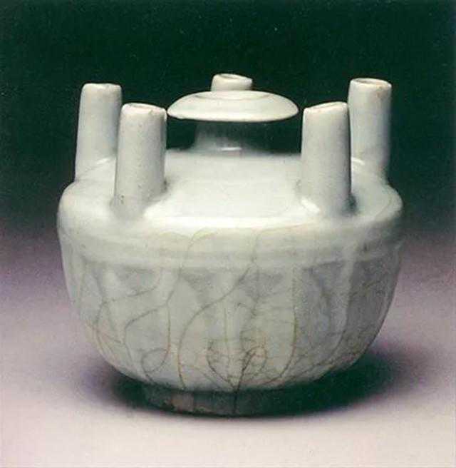 多管瓶:器身肩部塑有向上直立的管,故名。直口,上有花形钮盖,瓶身有圆筒式和多节葫芦式,一般为五管。是一种冥器,因瓶肩部各面分布着直立的多棱形或圆形管而取名。管中间是空的,多与瓶不通。南宋时期,一方面因供应南方官民的需用,一方面因政府鼓励海外市舶贸易,因此产量遽增,在今龙泉县、丽水县附近形成跨越八个县的大窑系,而福建沿海各窑场也争相袭仿,产品遍及韩、日、琉球、东南亚乃至非洲东岸。