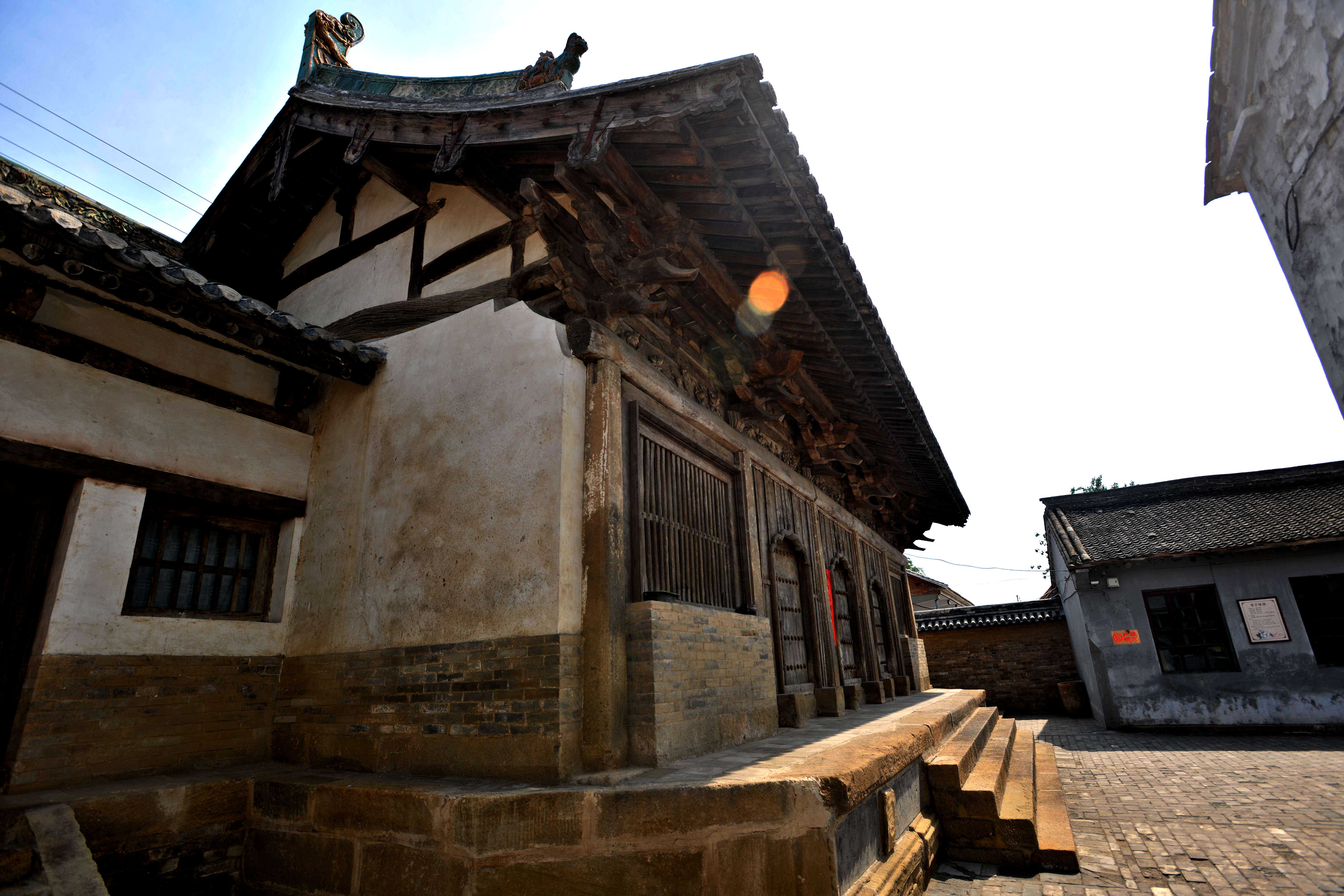东街和西街在观音堂相接,街边建筑多为明代万历年间修建,少数为清代建筑。街道北边除“复始第”和高家院、马家院等少数大户人家的宅院外,多为前商铺后住宅形式,一条条幽深的胡同为北方少见,大概是见多识广的主人从南方带来的理念。路南多为油坊、铁匠铺、银匠铺、染坊等建筑,目前已留存不多,多数被拆,建成了猪圈、茅厕等,大概正是专家教授所感慨“世界上最昂贵的猪圈”处吧。