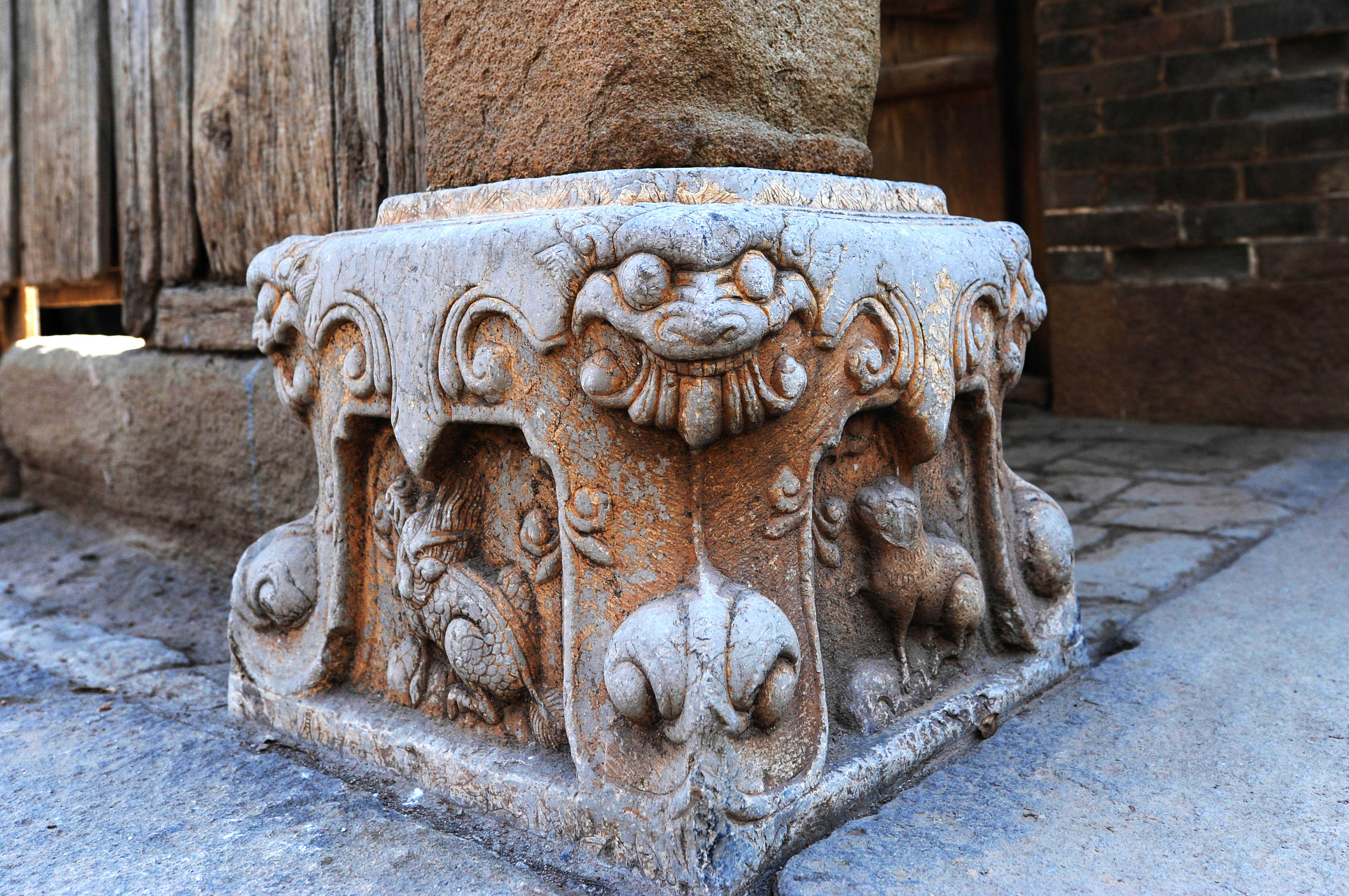 复始第为明万历三十一年(公元1603年)始建,一门高耸,两狮静卧,三雕精美,四围严合。正房四根通天砂石柱使这座民宅有了大气魄,传递着主人非同一般的胸襟和眼界。东、西厢房压窗石上的浮雕更是对主人品位的佐证,除雕有花鸟兽,还对应着刻有孝、悌、忠、信、义、廉、耻八字,南廊下是三米多高的砖雕“三元坊”大照壁。院深墙高,在此弥漫了数百年的儒家思想带着青苔的鲜湿气息依然浓郁,沁人心脾。
