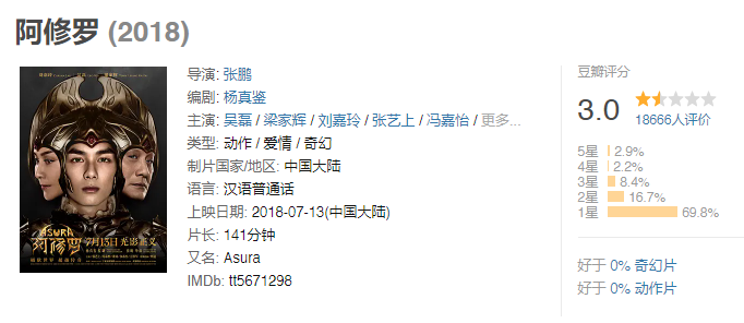 那就是2018年上映,评分高达3.0的究极魔幻特效史诗大片——《阿修罗》。