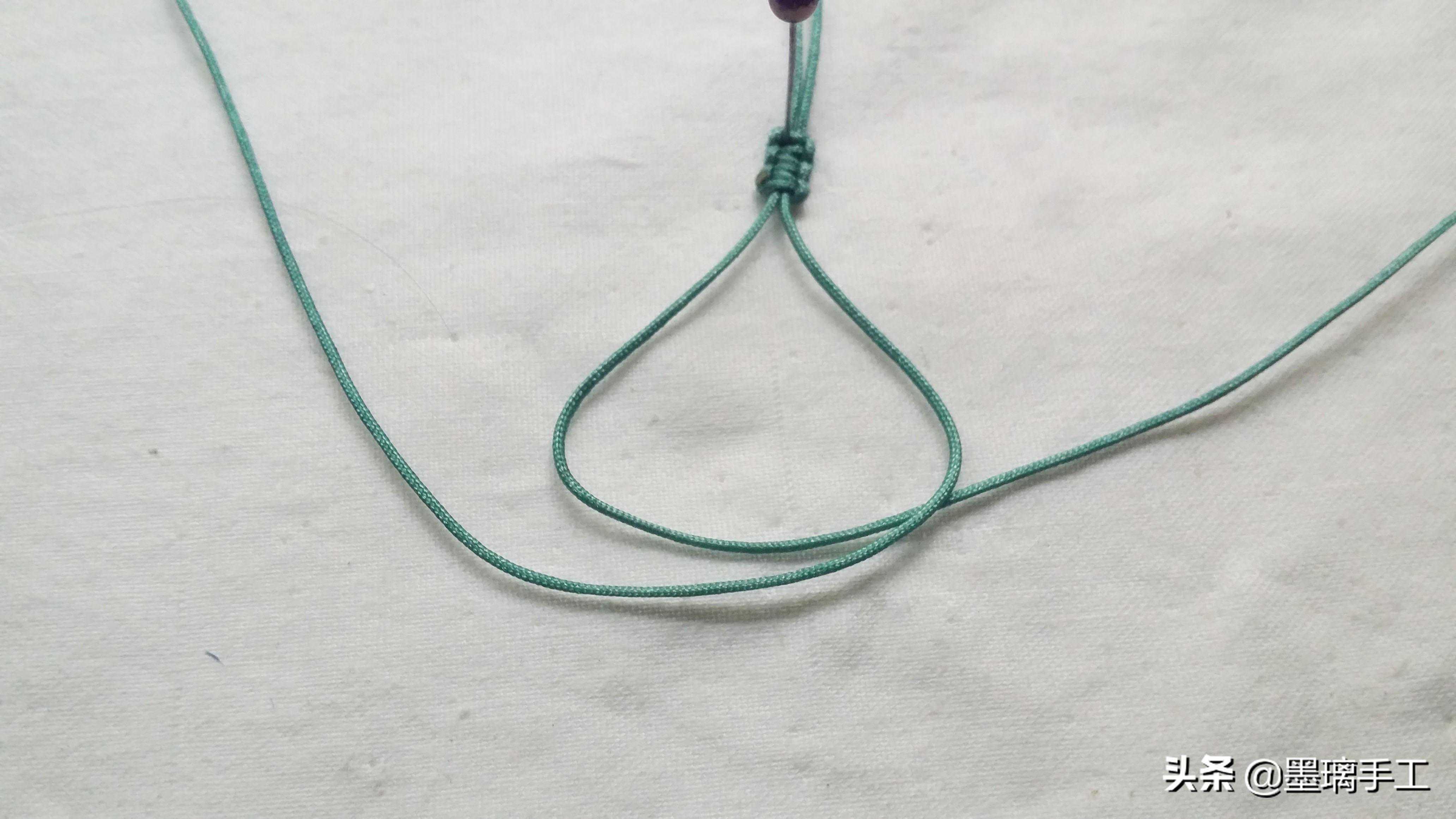 19.拿蓝绿色15cm的1条线,编3个平结,编好后,剪去线,并烧粘好。如图: