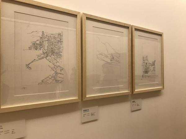 如果说展览横向空间以明线讲述的是西扎的建筑,那么纵向空间(墙面)的暗线诉说建筑以外的西扎——一批西扎各个阶段的旅行速写表达了其生活与工作的关系。