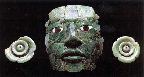 玛雅文化带耳坠的殡葬面具(翡翠制品)