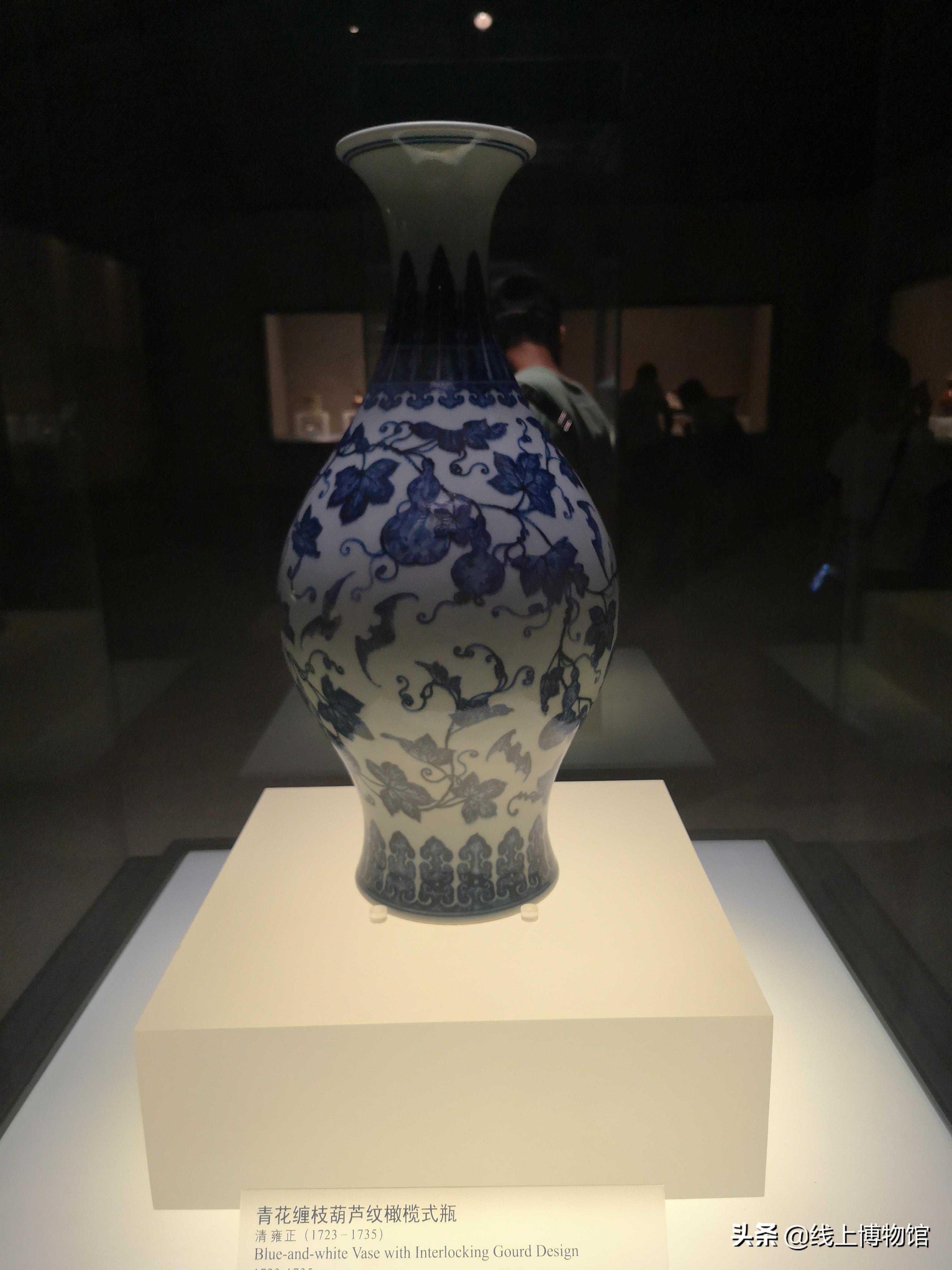 清-雍正青花缠枝葫芦纹橄榄瓶