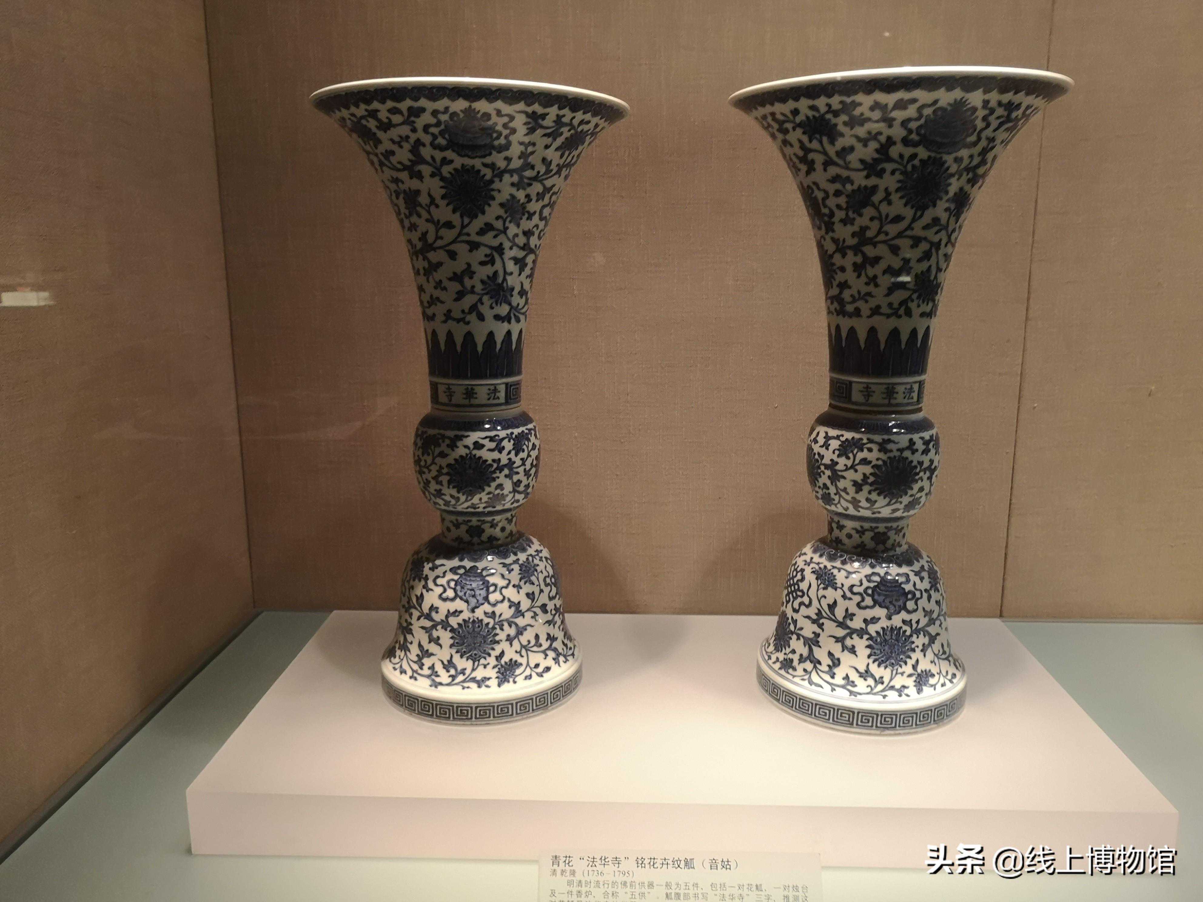 清--乾隆青花法华寺铭文花卉纹花觚