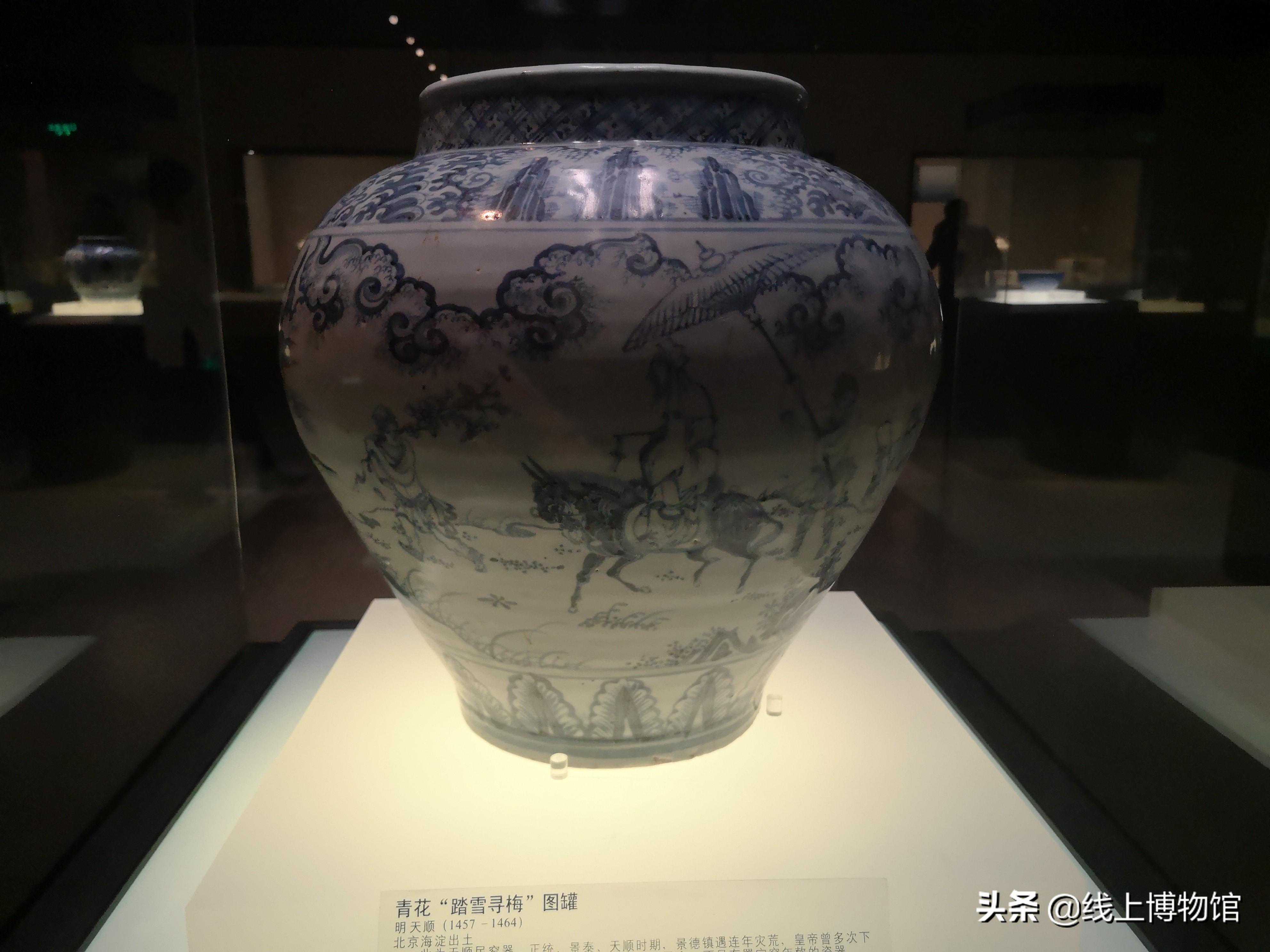 明-天顺青花踏雪寻梅图罐-俗称空白期,特点是云气纹