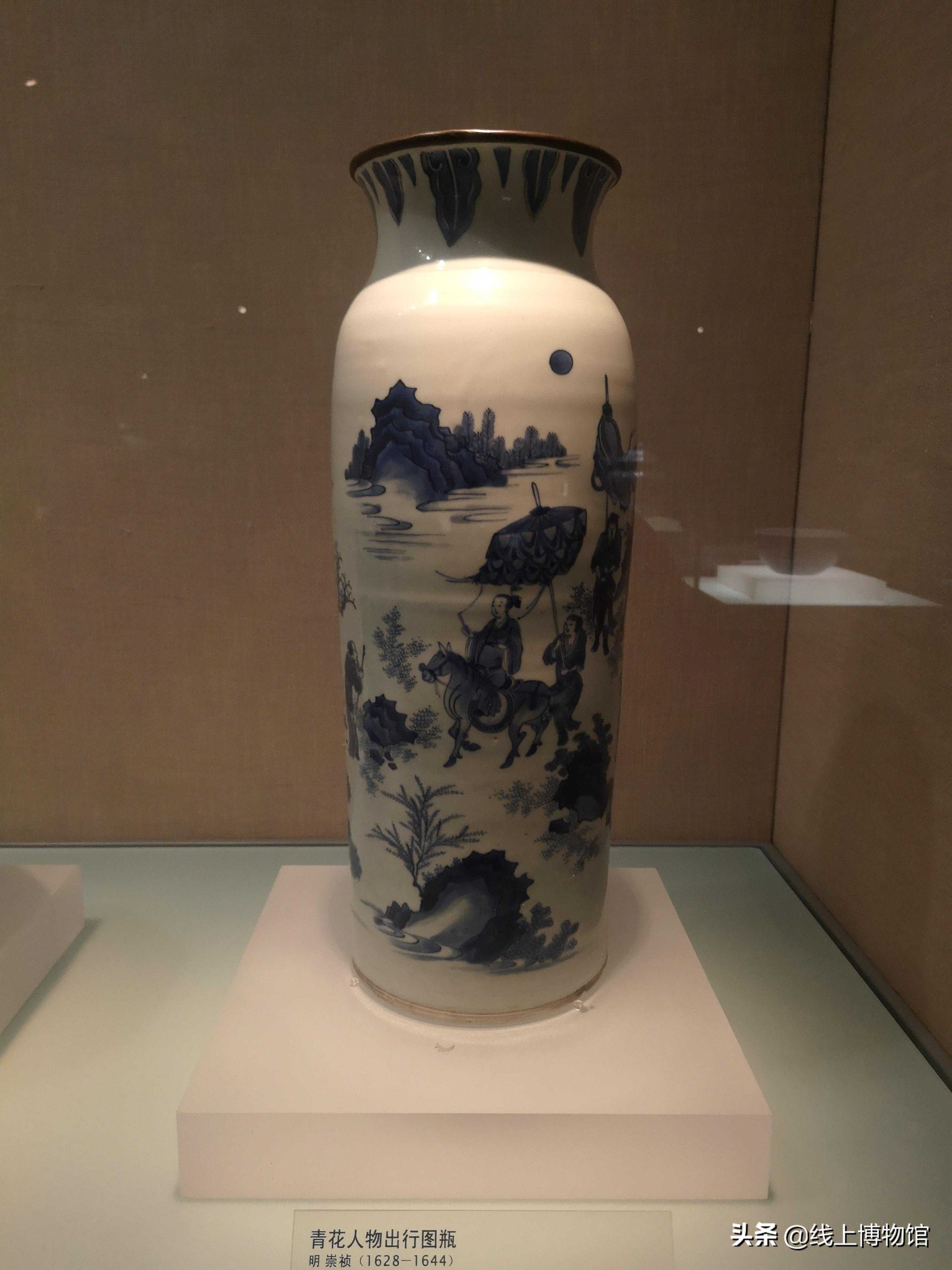 明-崇祯青花人物出行图瓶