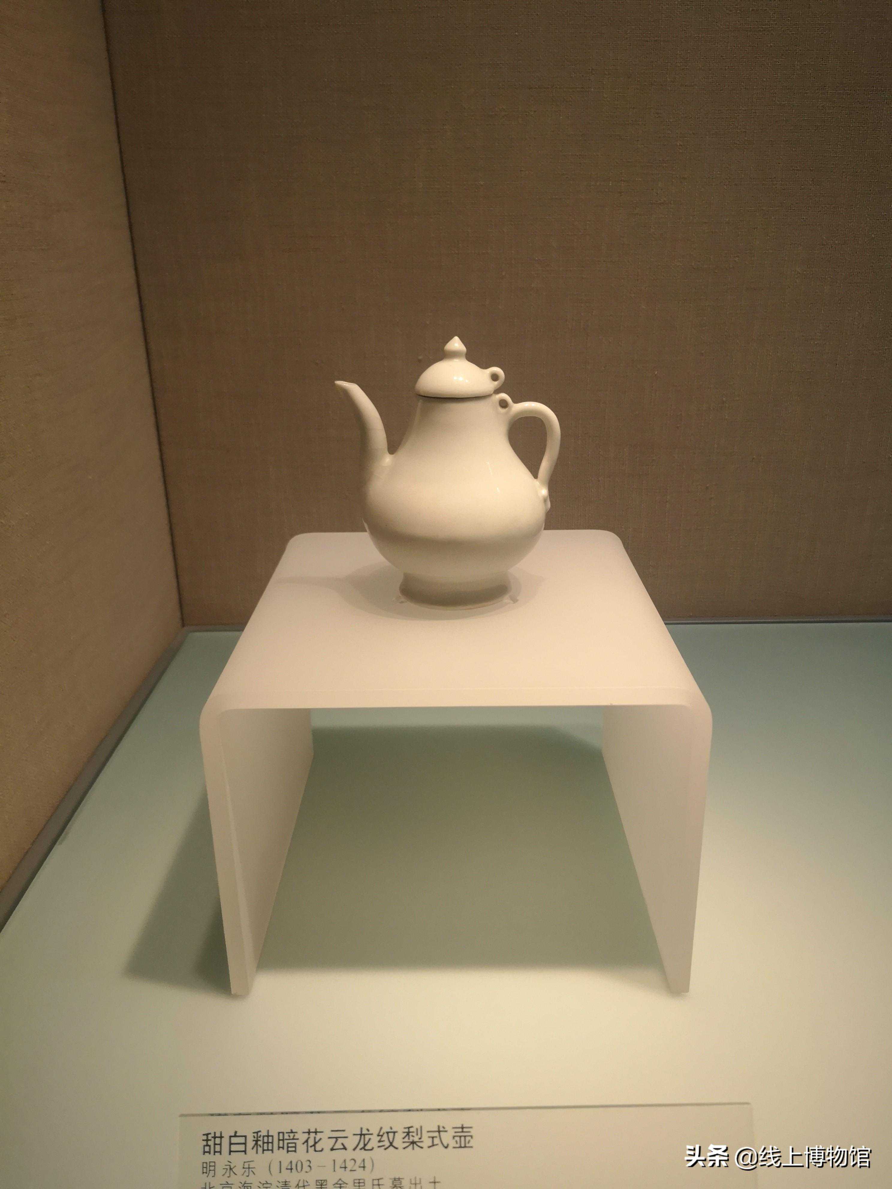 明-永乐甜白釉暗花云龙纹梨式壶