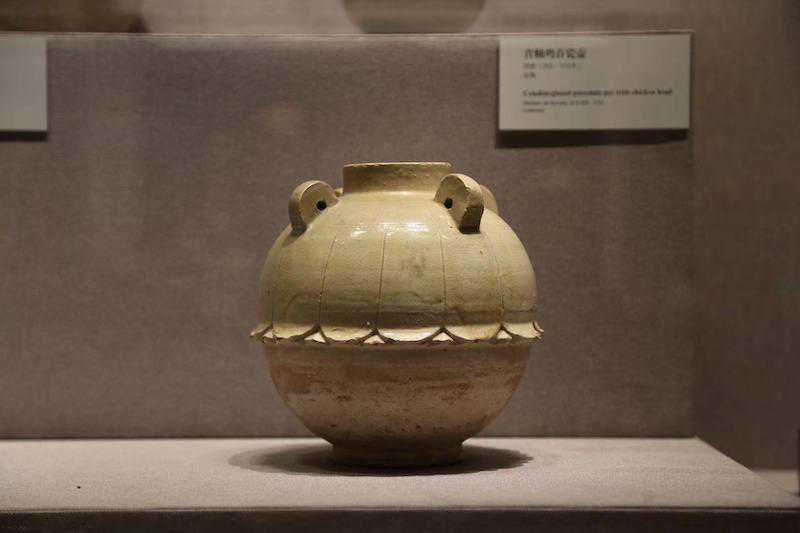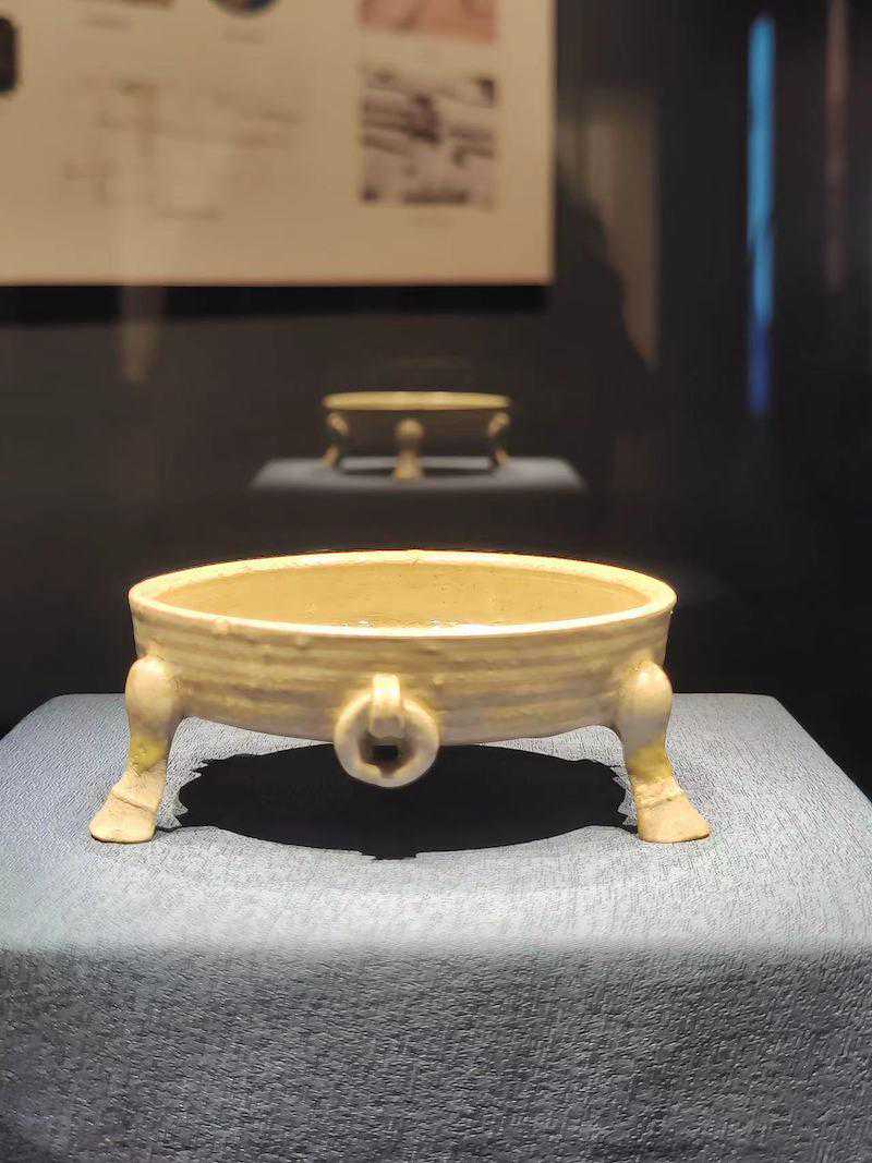 范粹墓葬中的这批白瓷是目前发现有可靠纪年,且年代最早的代表器物,有碗、盘、罐、瓶等多种类型,釉质薄而润,玻璃感较强,但白釉中泛着黄色,釉厚之处还带有一些青色,可见当时的白瓷工艺还处于青白过渡的初级阶段。在这批白瓷中,两件北齐白瓷莲纹罐最为典型,罐身圆润,直口,肩上附有4个可穿绳索的耳系,器物上半部施以白釉,下半部刻有浅浅的莲瓣纹,釉面有细碎开片,微微泛黄。科研人员通过检测进一步发现,北齐工匠在白釉底下薄薄地施了一层化妆土,目的是提高釉面的洁白程度,在白瓷工艺尚不发达的初创年代,此举实在巧妙。