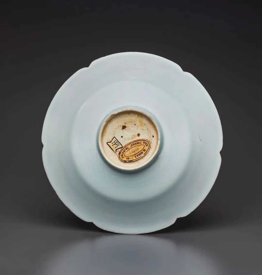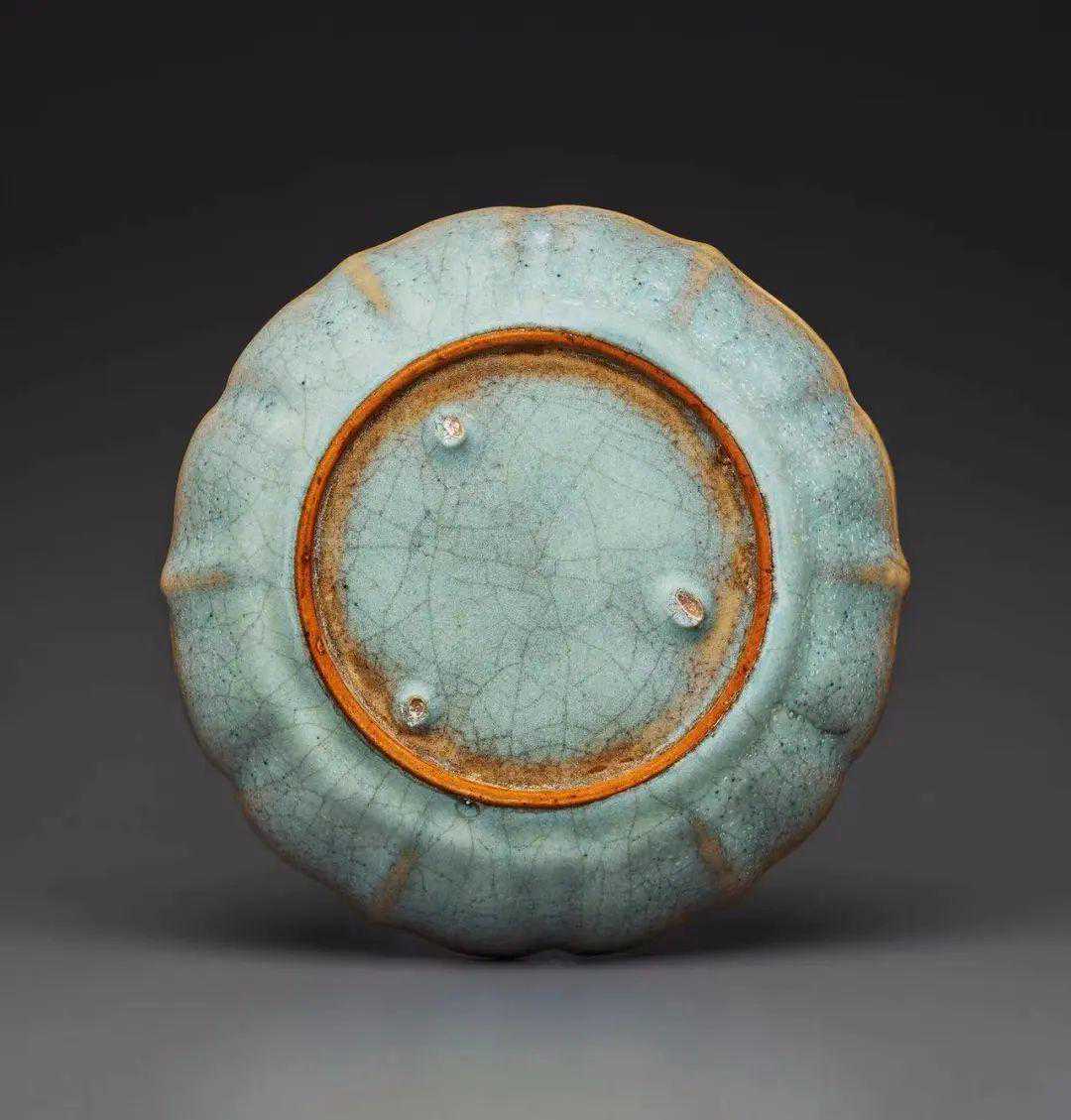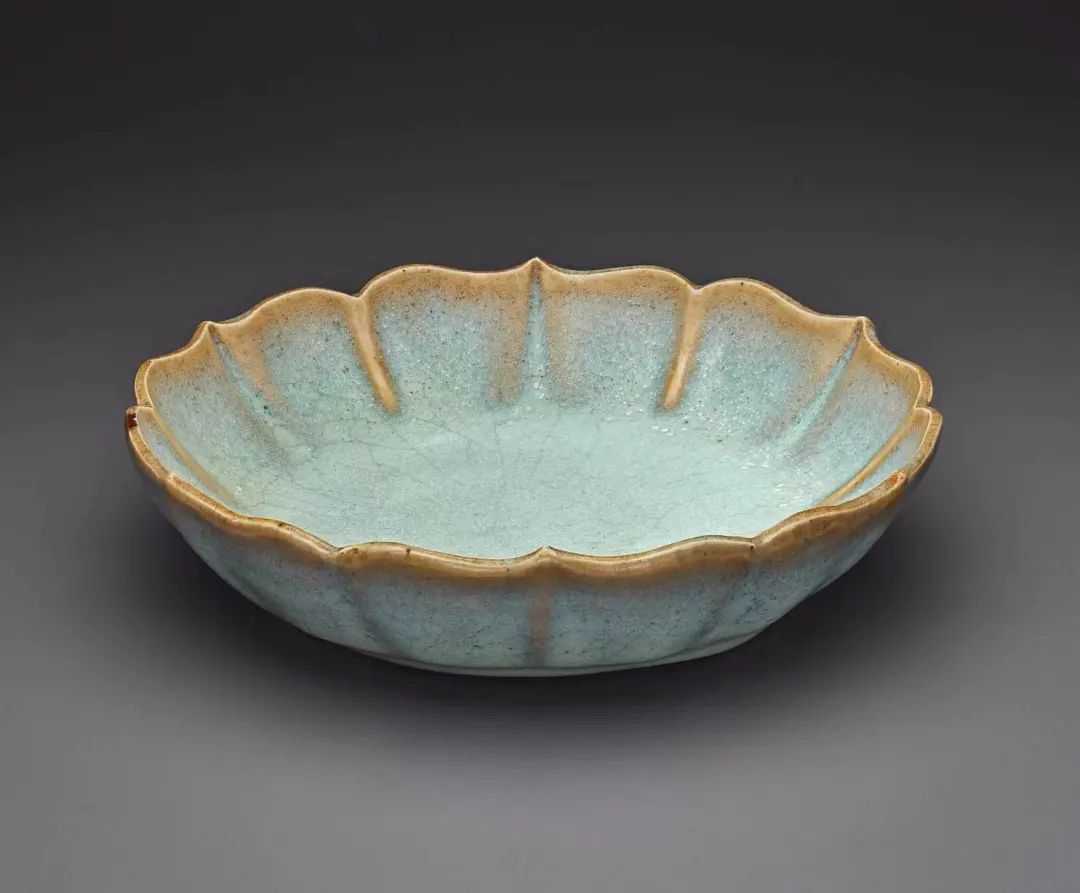 元-明(十四世纪)钧窑天蓝釉海棠式盘