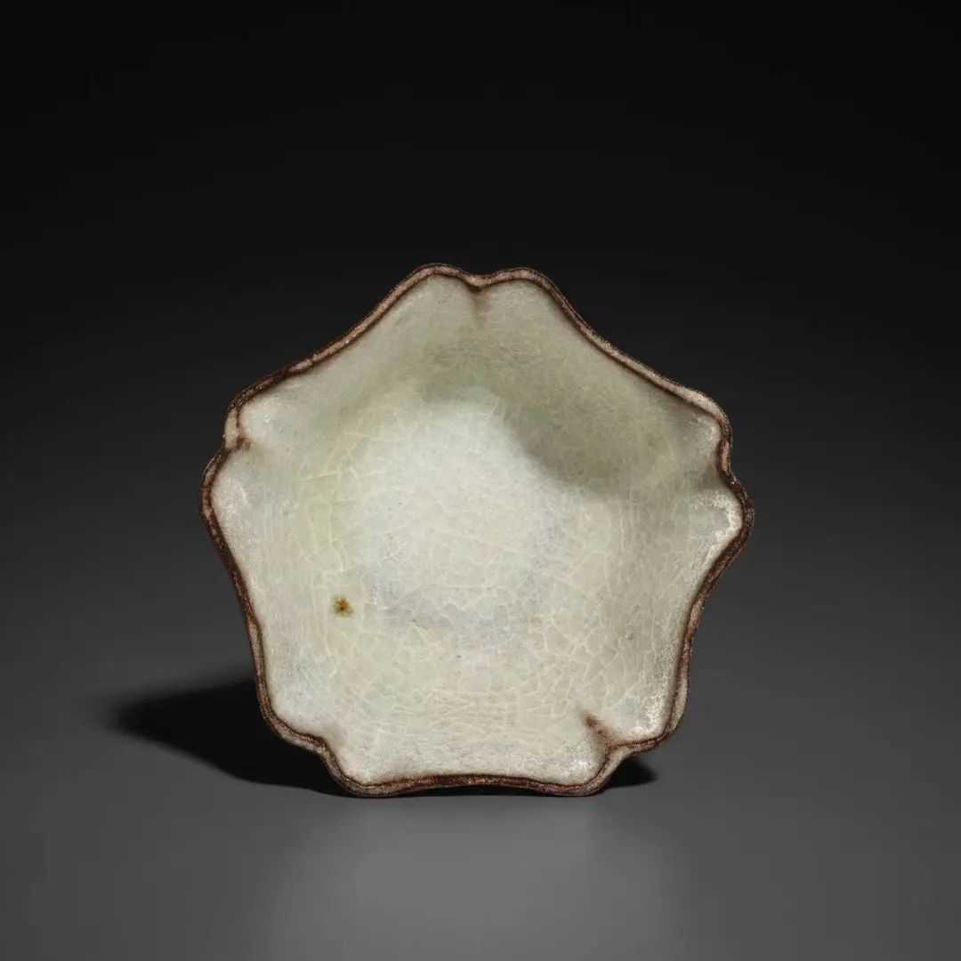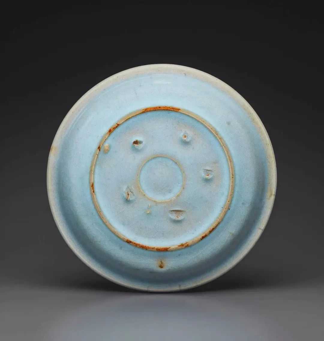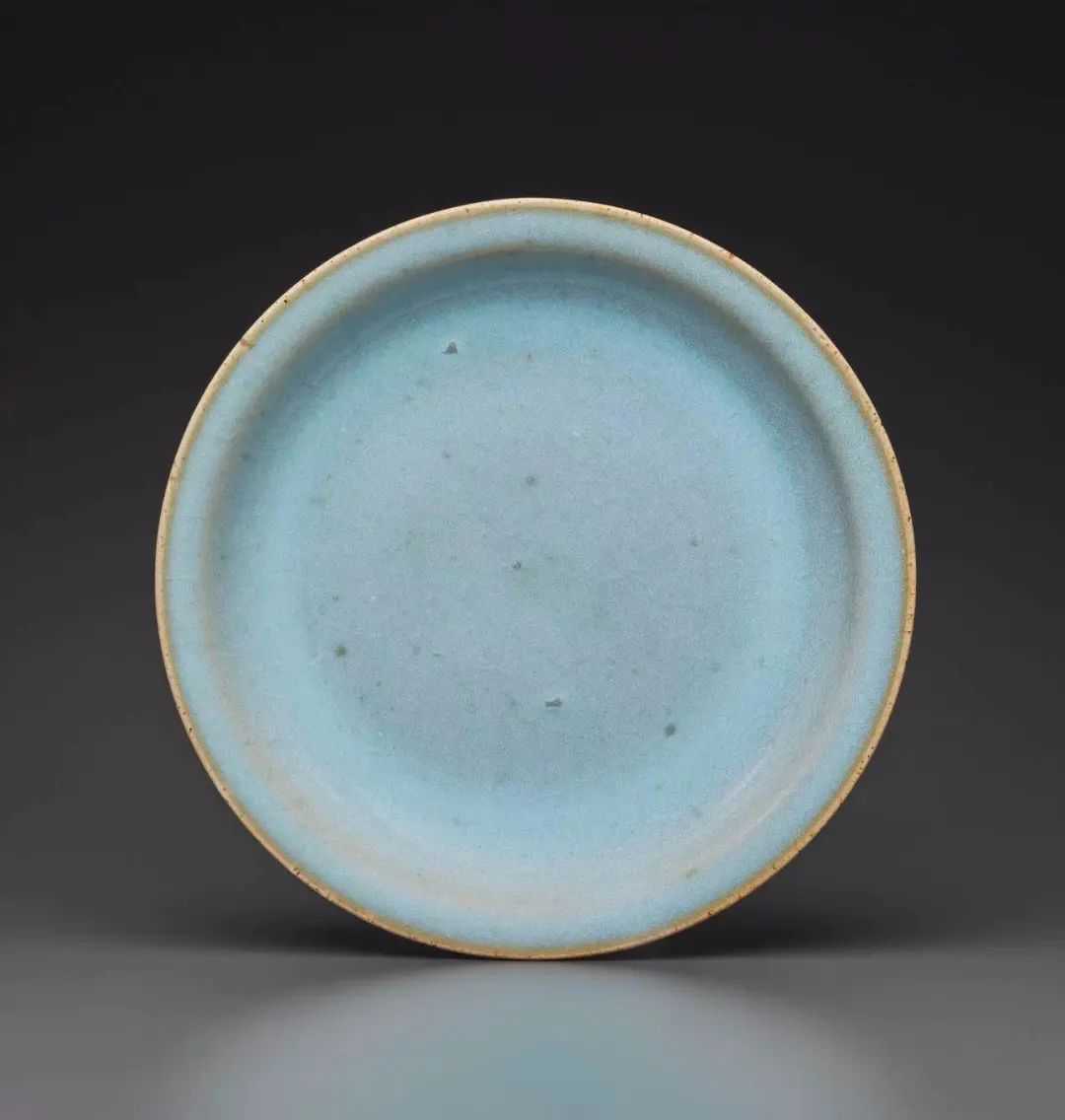 元-明(十四世纪)钧窑天蓝釉海棠式盘