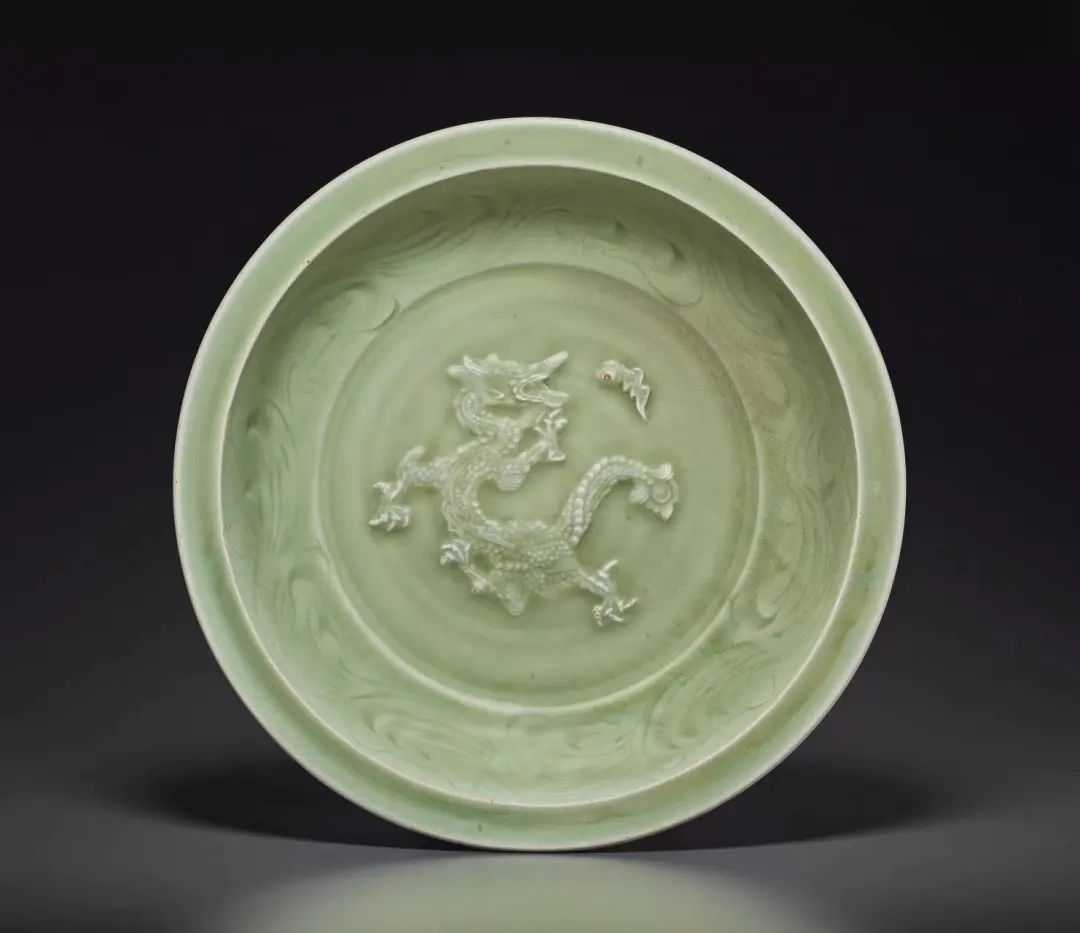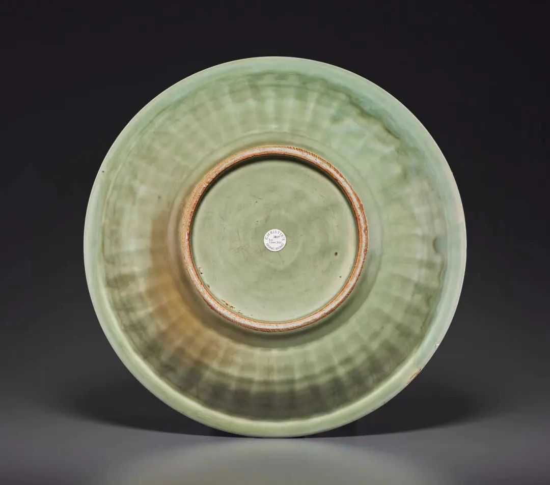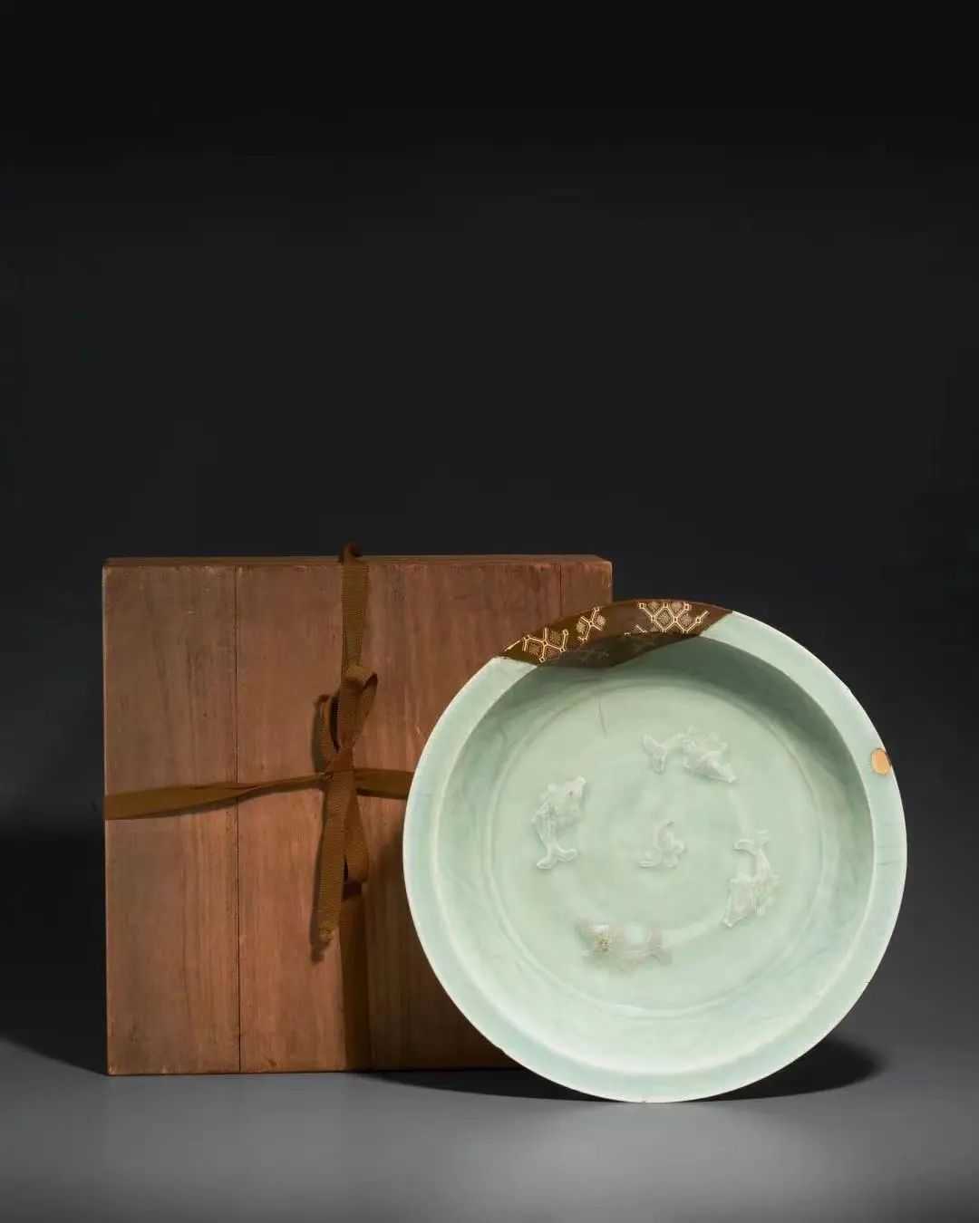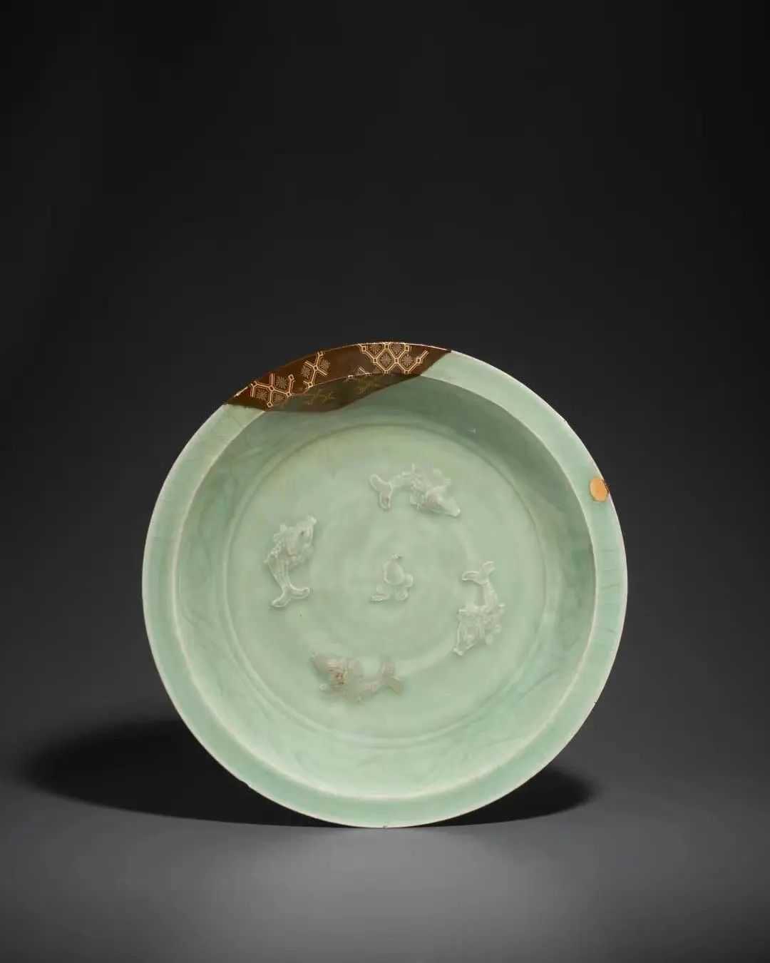 元龙泉窑粉青釉塑贴四鱼纹大盘