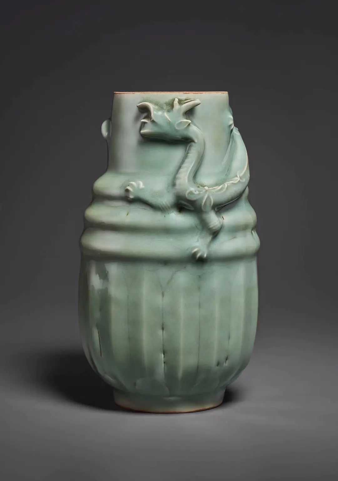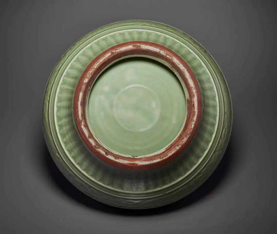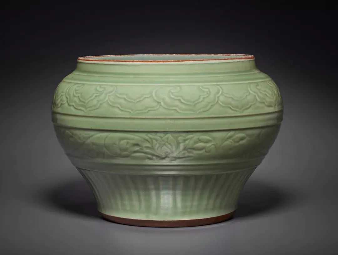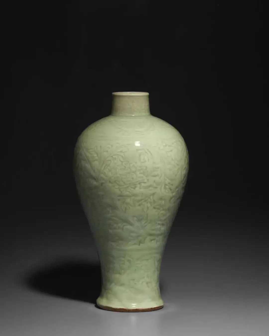 明十四-十五世纪龙泉窑青釉刻缠枝莲纹梅瓶