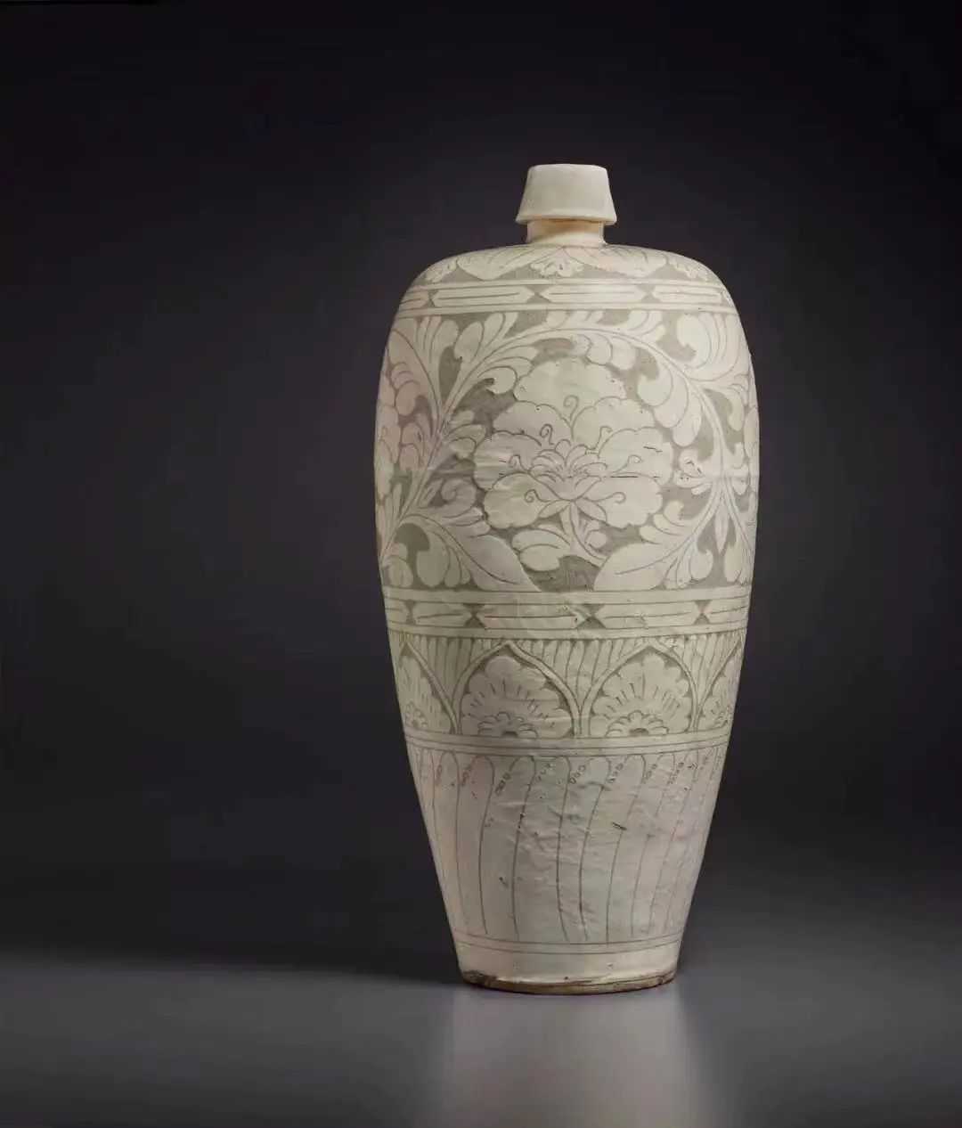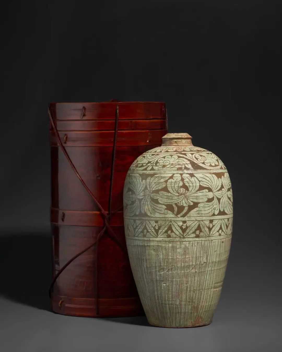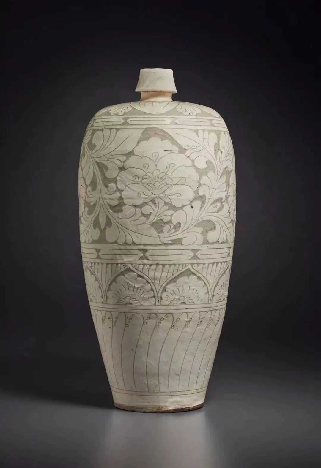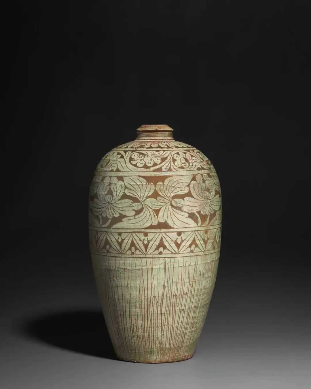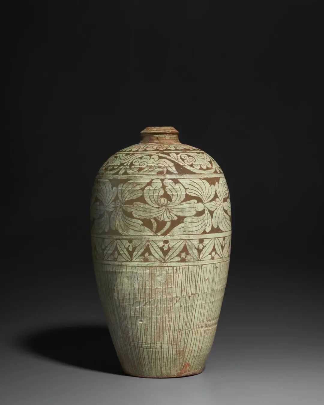 北宋磁州窑绿釉刻卷草花卉纹梅瓶