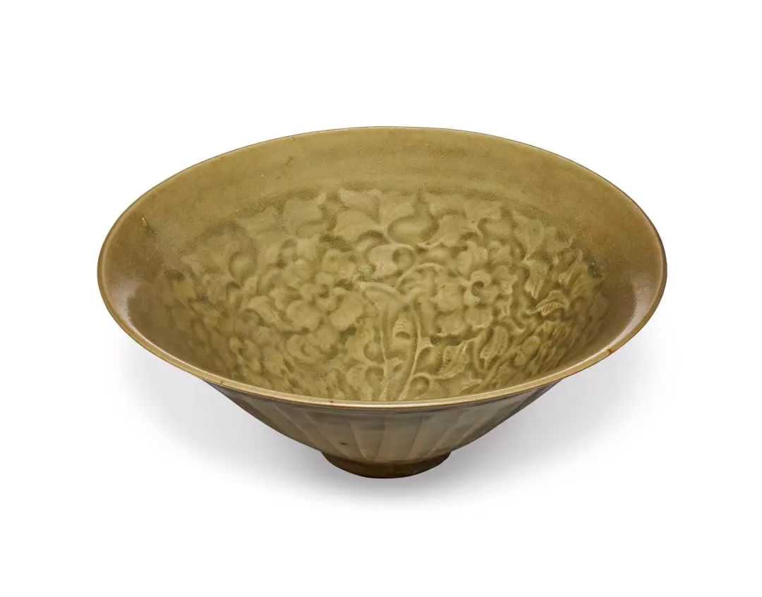 北宋耀州窑青釉模印牡丹纹笠式盌