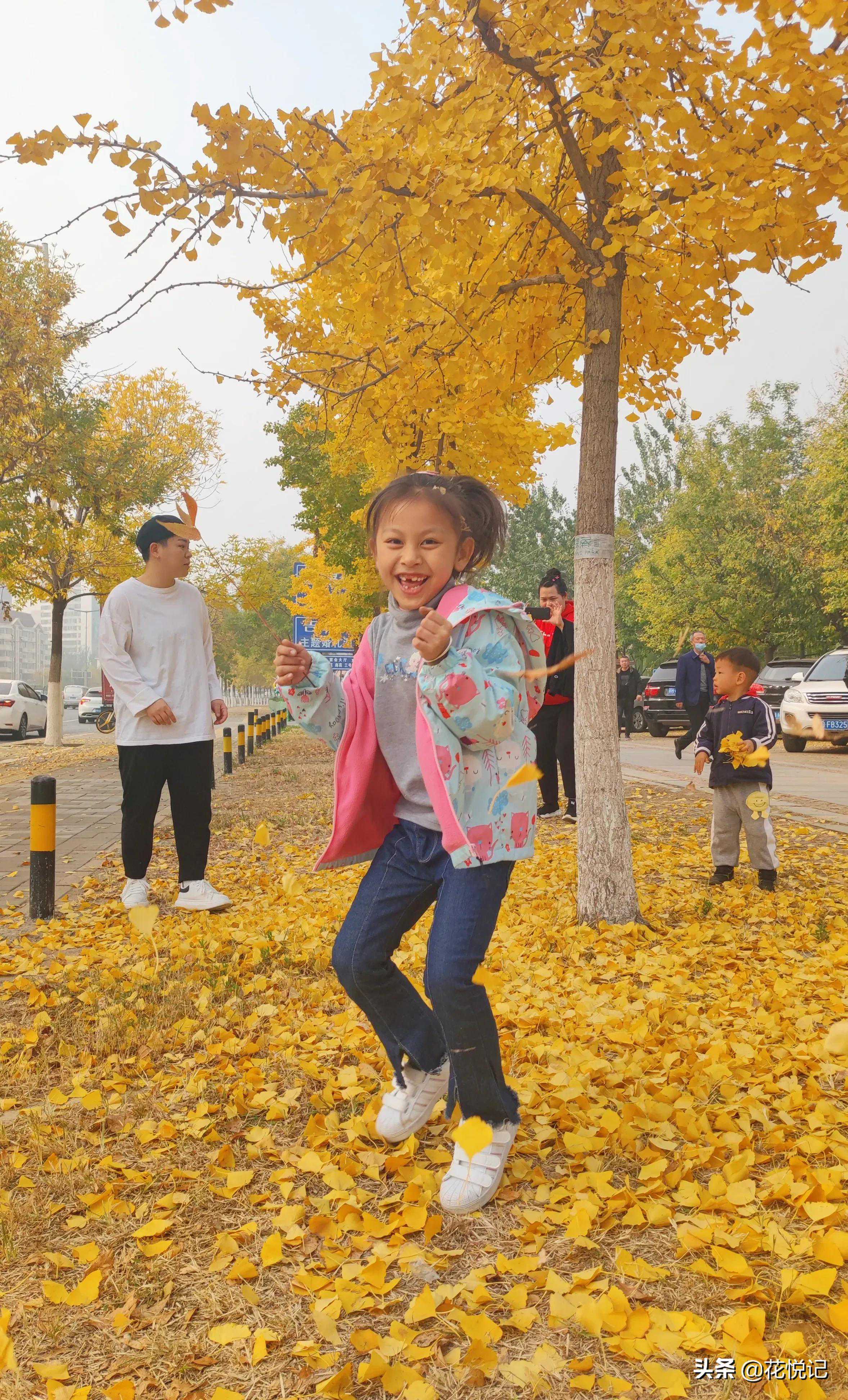 无论男女老少,此刻,我们因这一地的银杏落叶不约而来,我们都成了孩子,无忧无虑的孩子!