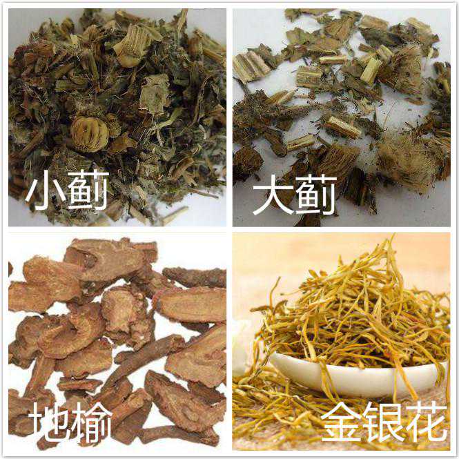 金银花清热解毒,地榆清热凉血,收敛止血。合用则清热止血中兼有收敛之长,主治血热妄行之血崩、血痢,善治下部见血,故古人有“下部见血用地榆”之说。