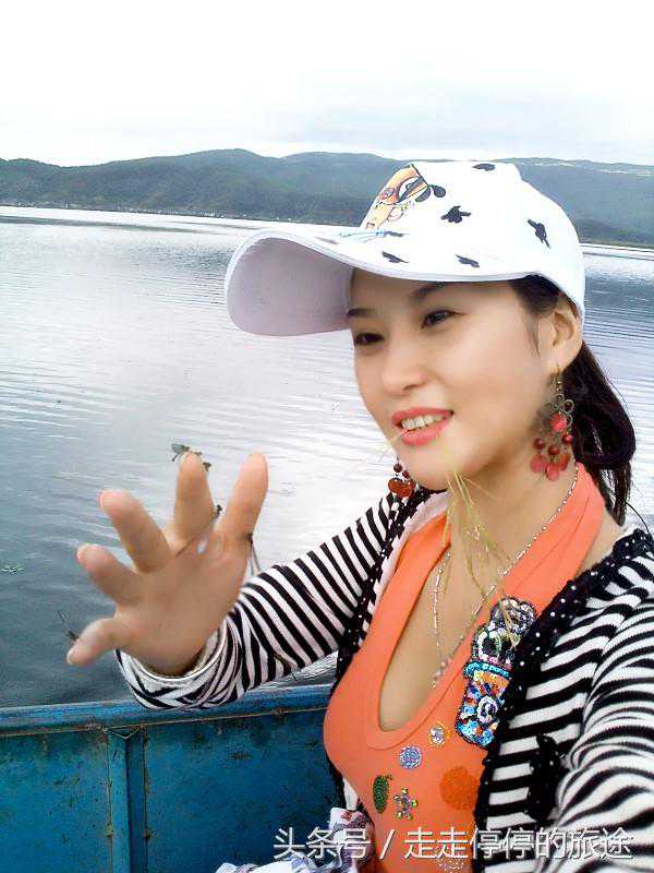 拉市海的蜻蜓独爱我,船上几个人就停我手上身上