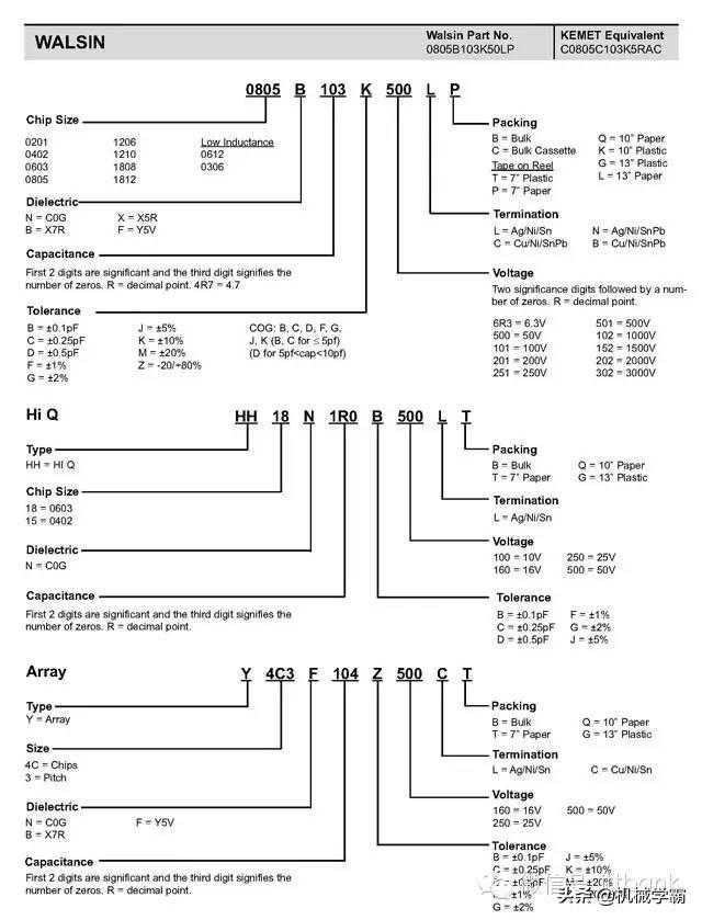 电容器命名规则不一,部分知名厂家命名规则如下: