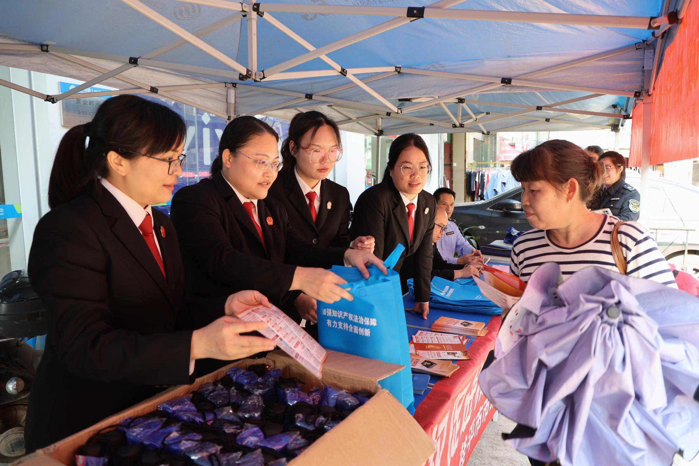 图为甘惠芳(左二)在开展知识产权保护普法活动
