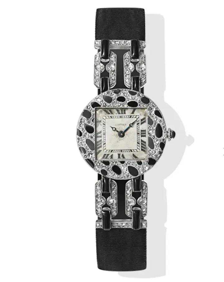 一位身着时髦束腰长裙的美女,捧起象征纯洁的三层珍珠项链,脚下伏着一只黑色的猎豹。从此,卡地亚把猎豹视为女性意识的苏醒,将其与珠宝这一永恒的女性表达联系在了一起。