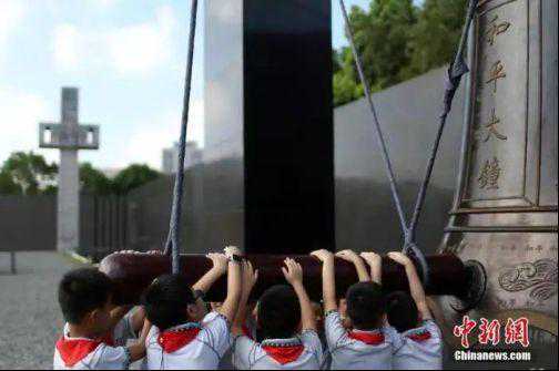 资料图:2018年8月15日,南京小学生撞响和平大钟。中新社记者泱波摄
