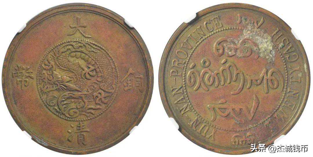 拍品描述:LOT55,云南省造大清铜币二十文臆造币,有腐蚀,NGCUNCDETAILS,耿爱德-包克藏品,这也是一枚非常著名的臆造币,由云南省造。19世纪30年代时,很多中国钱币藏家都在收藏云南铸造的珍品,当时大家都把这枚币当作真品,因此这枚臆造币当时的价格也非常之高。这枚精品钱币也出自1949耿爱德-包克收藏,经评NGCUNCDETAILS。,起拍价:10000元。