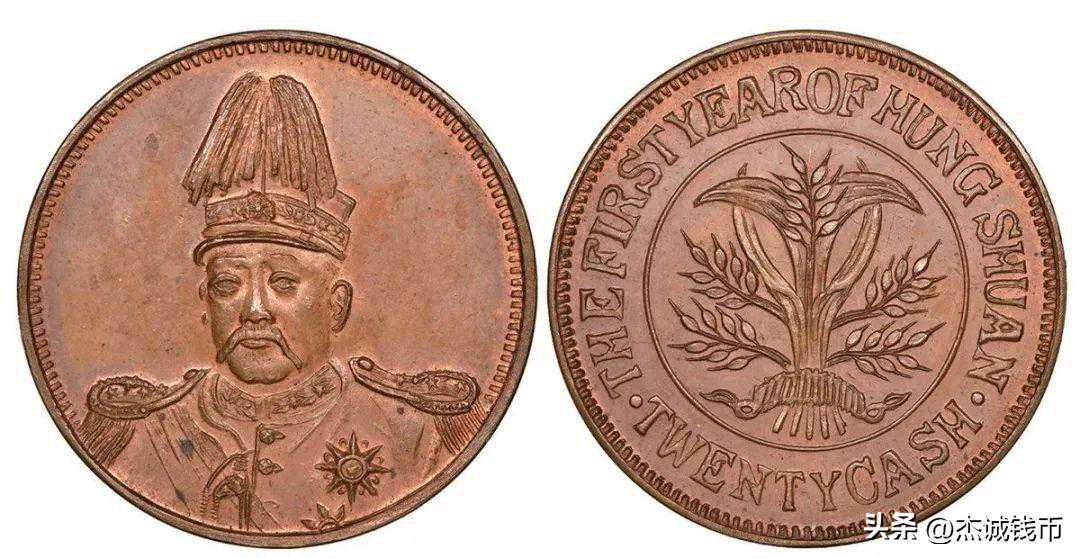 拍品描述:lot050,1916年(民国五年)袁世凯像背嘉禾二十文铜币,臆造币,CCC-693,NGCMS65BN,已知品相最好的,NC藏品