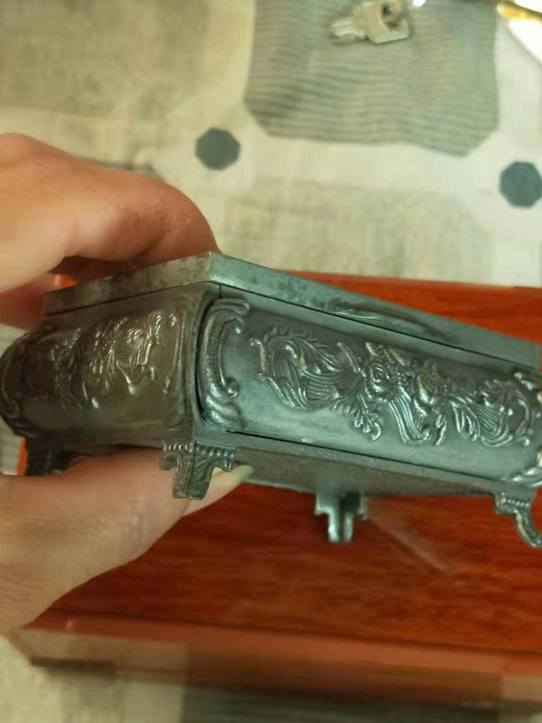 Thiscopperboxchiselcarveddecorativepattern,fineingrain,fourlegs,shapeofbronzedings,exquisiteworkmanship,wholewithoutanyflaw,thedecorativeimplicationauspicious,notonlyhashighornamentalvalue,aswellastheartisticvalue,becauseonlyrare,madeofpurehandmade,therewillnotbeexactlythesameasthecollection,andsooncollectionmarketisextremelypopular,hasaveryhighcollectionvalue.