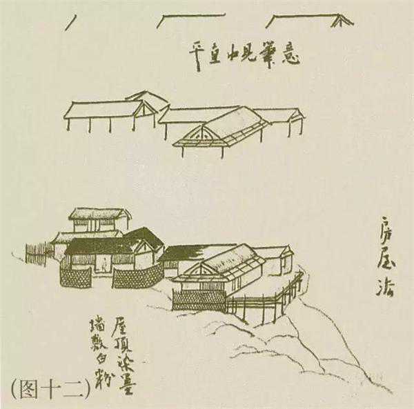 屋宇以墨线为主,平直中见笔意,屋顶多以染墨,偶皴石青、石绿,墙以淡赭为主,偶以蛤粉提亮。(图十二)