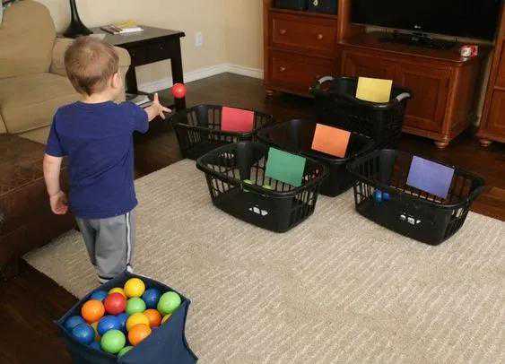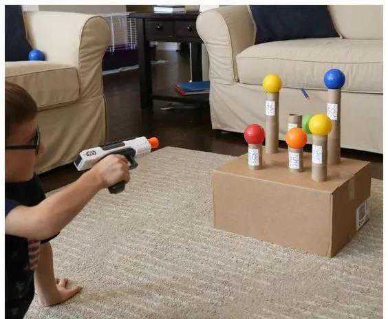 这个就像游乐园里投掷球的简约版,只需要一个纸箱子和几个纸杯子,就可以做出来。还可以将纸杯子涂成各种颜色,以增加乐趣感。