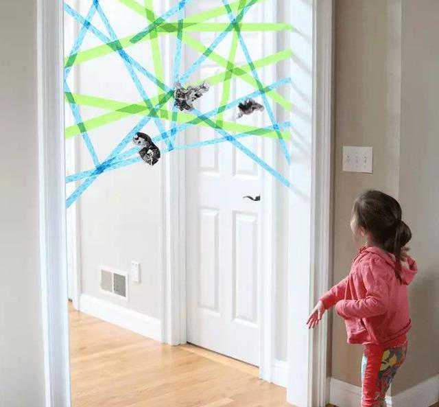 粘贴一些透明胶带,可以让家里的孩子们让其扔小纸团,看会不会被黏在上面。看谁黏多。